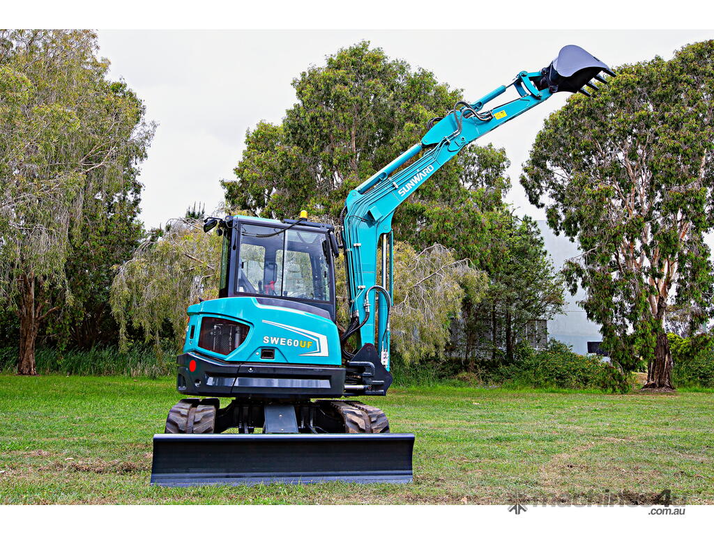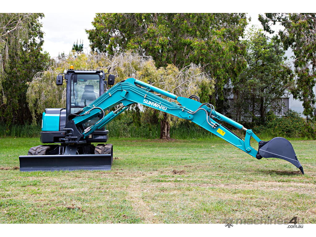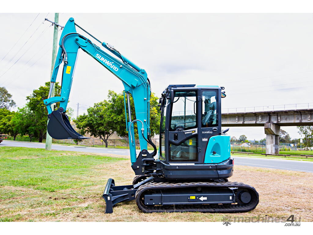 The Sunward European design SW60UF model is an impressive 6ton zero swing mini excavator. Features include standard hydraulic hitch auxiliary piping, zero tail swing that makes those compact narrow jobs manageable. Spacious cabin with sunroof, colour LED 7-inch touch display screen to monitor your machines performance with WIFI function. Engine maintenance is easily accessible with an open engine cover allowing access to all engine components for easier servicing. Powered by Japanese Kubota engine and hydraulics, our Sunward range of mini excavators comes with a 3 year/3000hr comprehensive warranty.