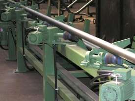 Conveyor: V-type skew-roller system (synchronously rotates and feeds the pipe).