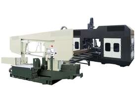 Sawing Unit: Double-column hydraulic bandsaw with automatic mitre rotation.