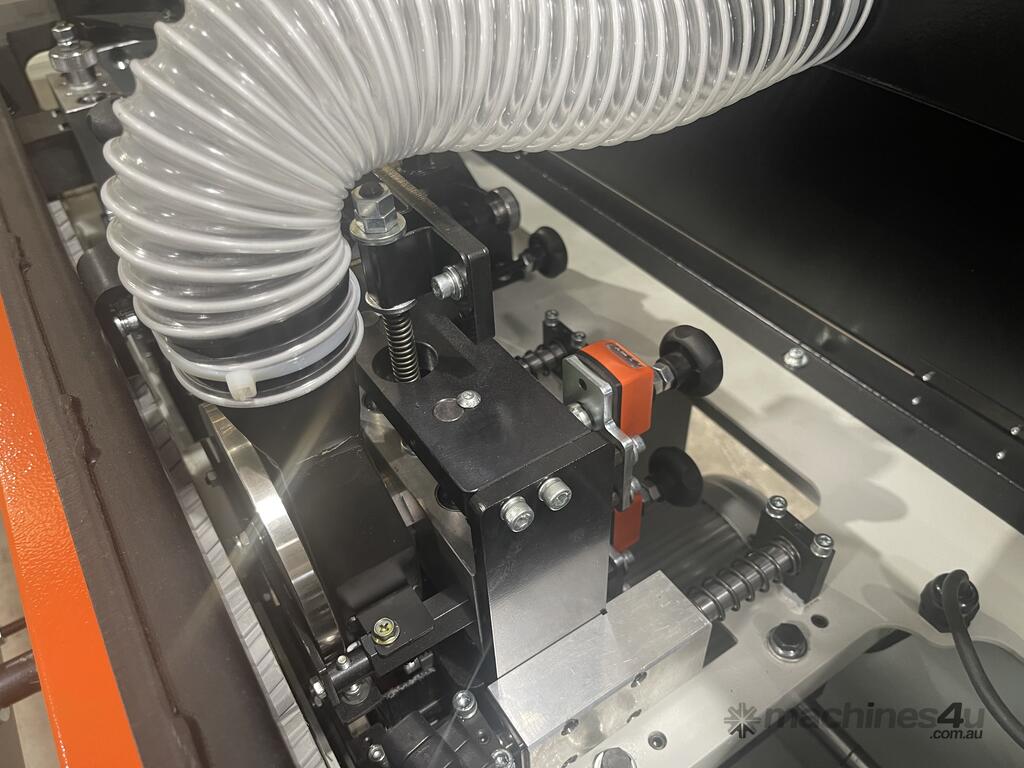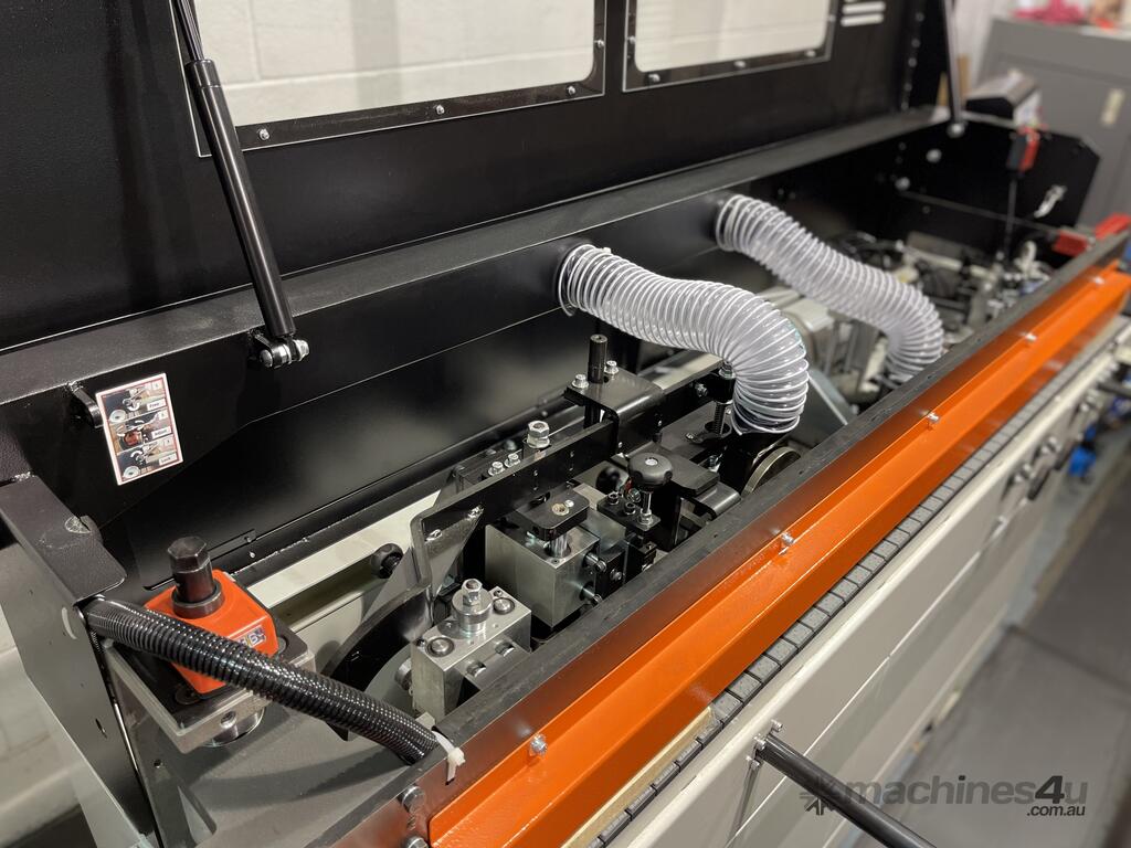 With a feed speed of 7 mpm this little machine packs a punch well above its class. If you are looking for a small footprint, easy access from the front of the machine, reliability, service and a specification that will deliver then look no further.