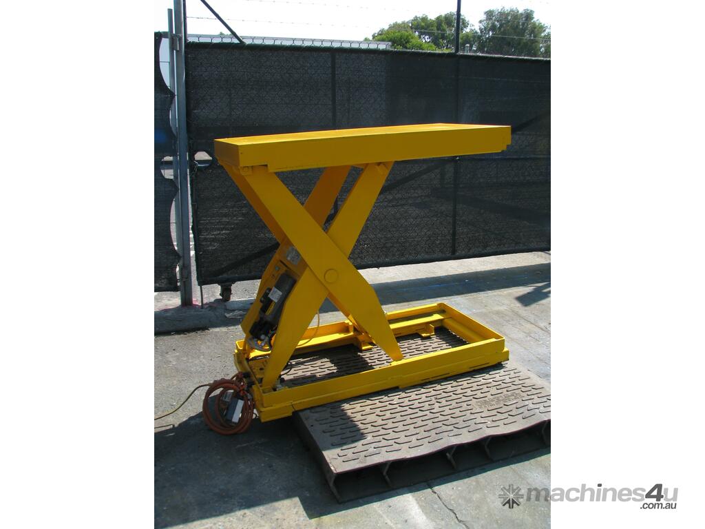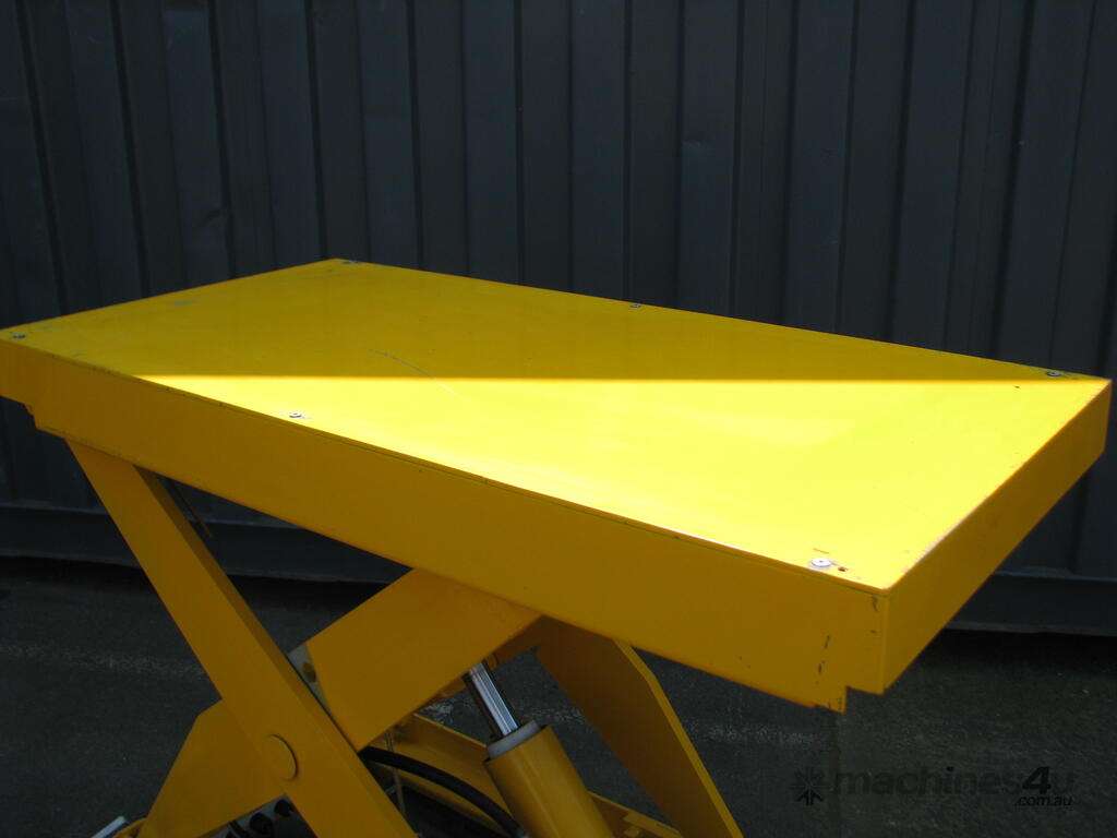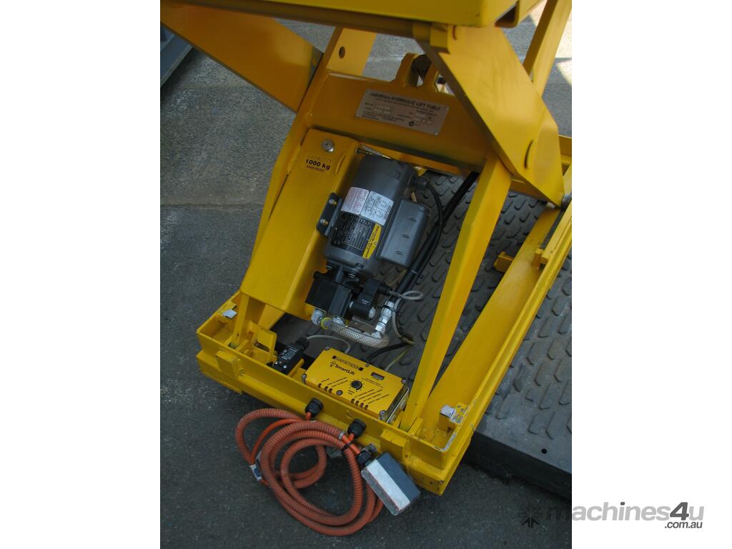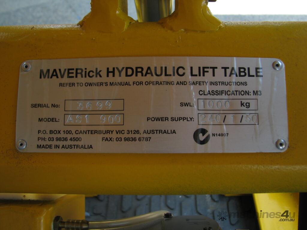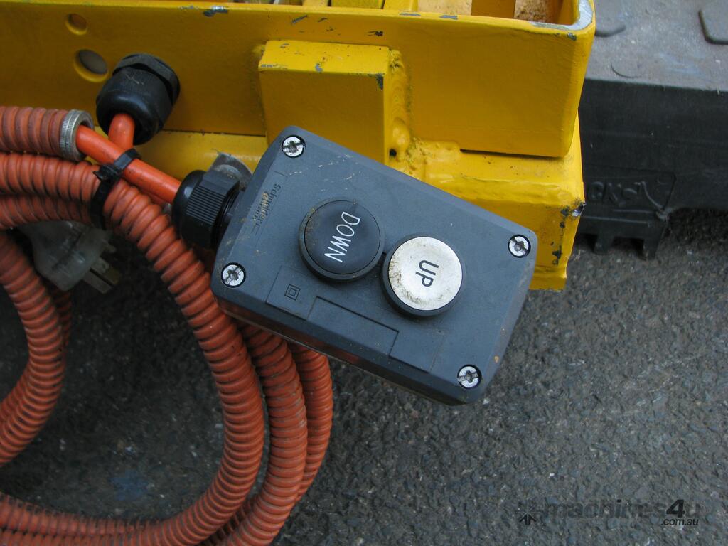 This scissor lift is strong and sturdy and is in great working condition. It reaches a max height of 1.1m, and can lift up to 1000kg and runs off normal 240V power.