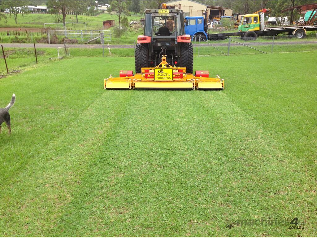 Our 3.6m turf mowers are specifically designed for use in public areas such as councils, golf courses, and parklands. Built with extra guards on the sides and rear of the decks, these mowers feature provisions for lights and signage, ensuring safe operation in congested environments. Designed and manufactured by Saliba Ag in Australia, they are built to withstand Australian conditions.