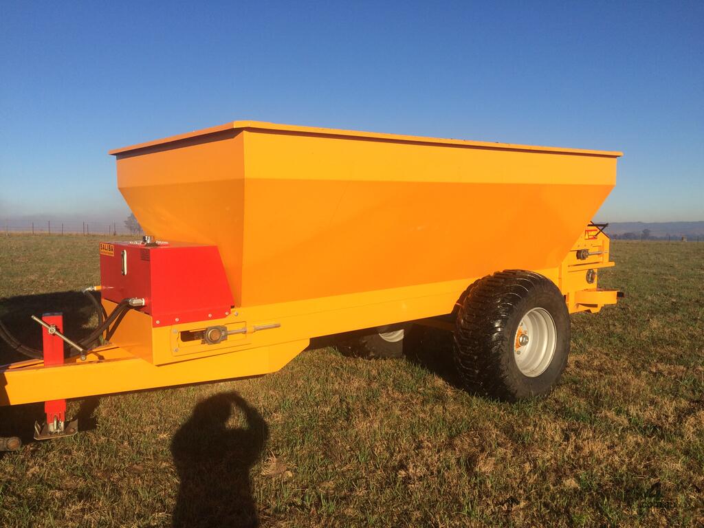Ideal for granular products, lime, gypsum, and manure, with capacities ranging from 2 to 12m³.