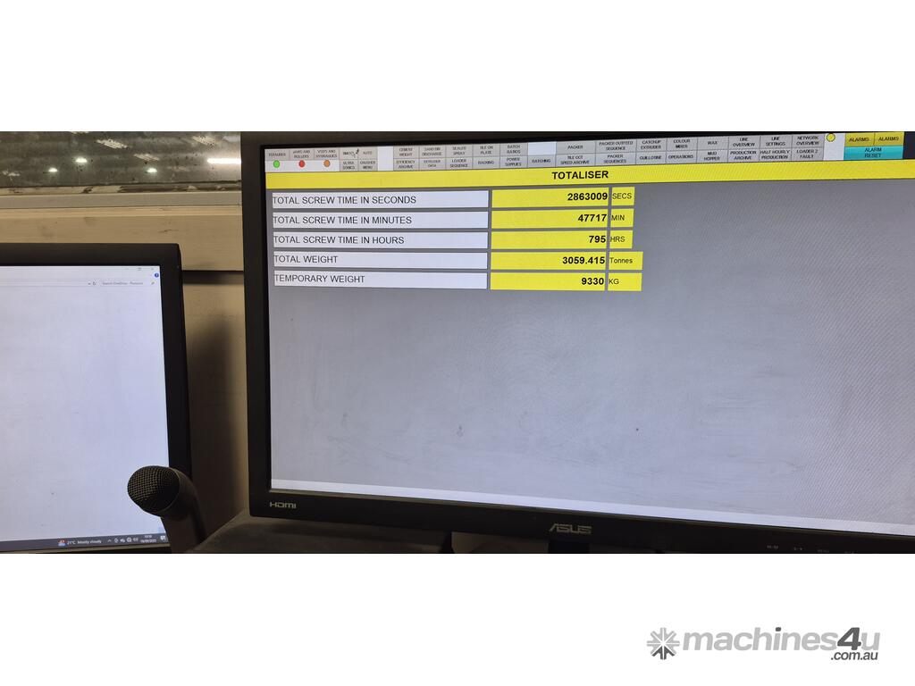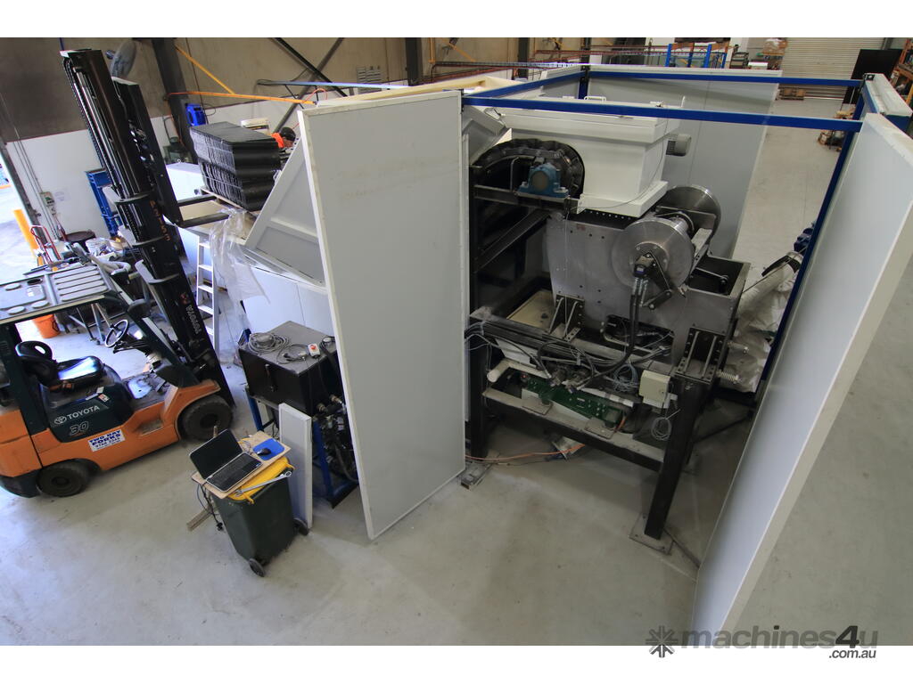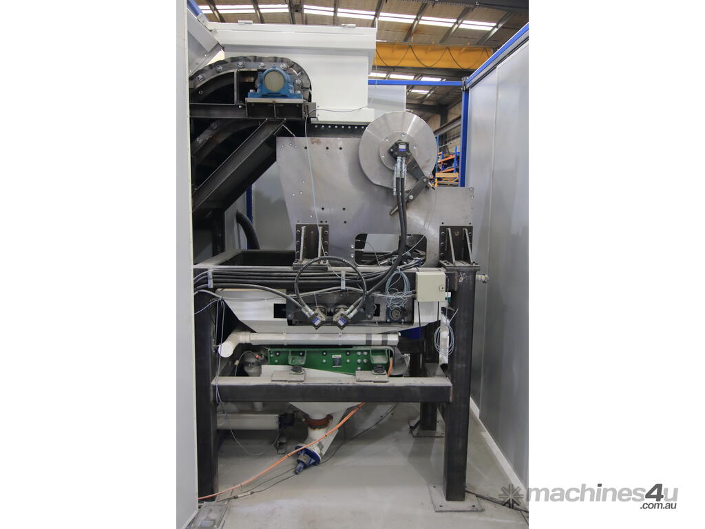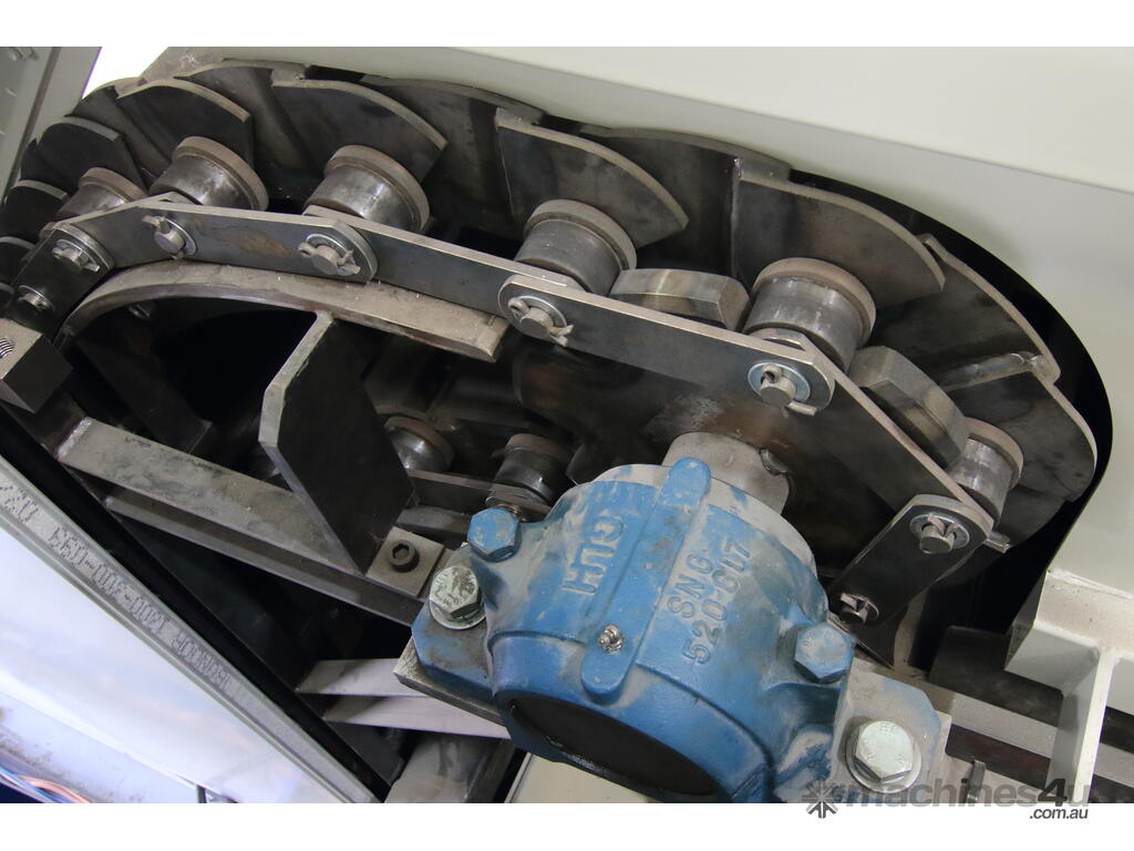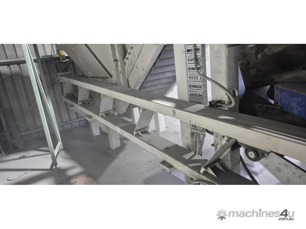 Control cabinet, hydraulic power pack, infeed hopper & variable-speed conveyor, pre-crushing roller, jaw crusher, sizing rollers, vibratory screen, reverse pulse dust extraction, oversize return conveyor, outfeed hopper, and 2m outfeed screw. 3 other screws also available for purchase.