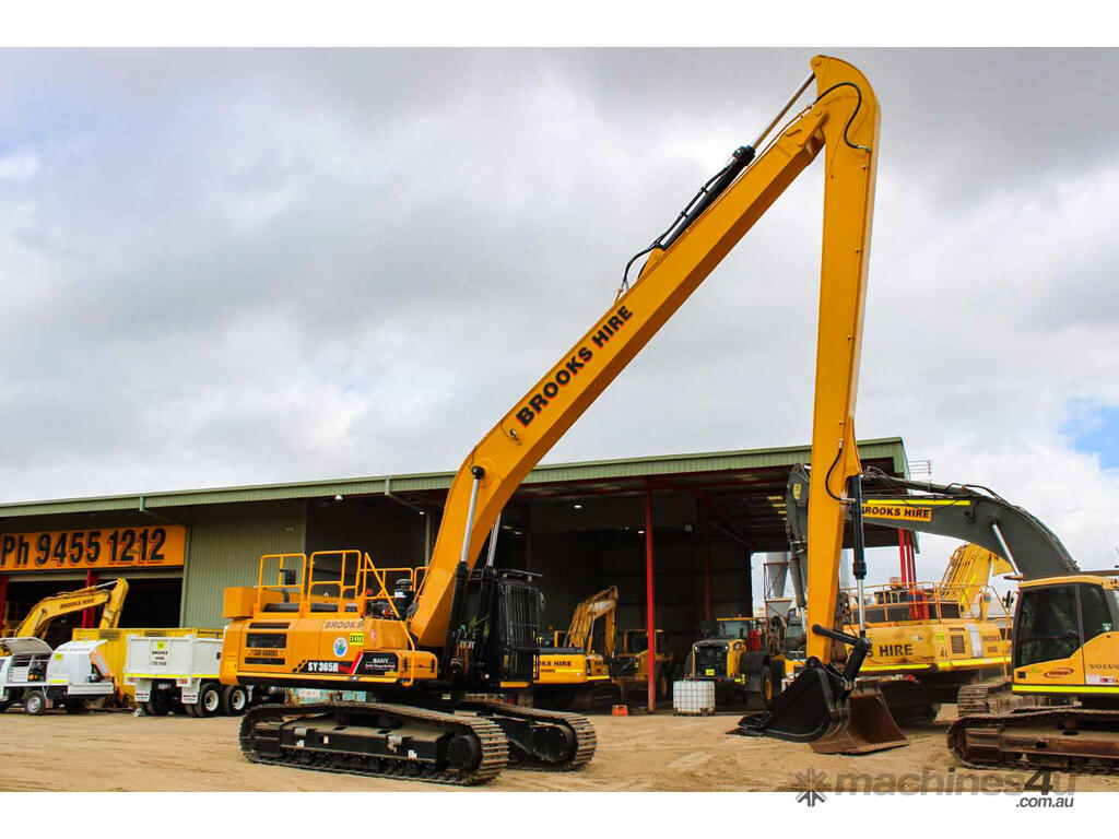 Sany SY365LR (Long Reach Arm - 18.5 m) crawler excavator is configured with specific control program in order to get adaptive to operation of super long boom, reduce the impact from action, and improve controllability and comfort.