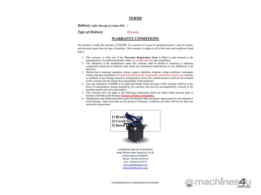 220mm round bar cutting capacity at 90 degrees * See full specs in images *