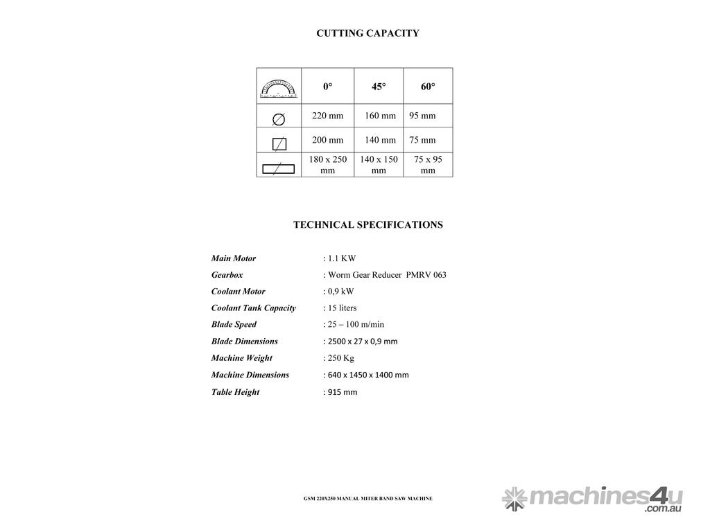 – 220mm round bar cutting capacity at 90 degrees * See full specs in images *