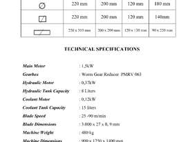 220mm round bar cutting capacity at 90 degrees *see Full specs in images*
