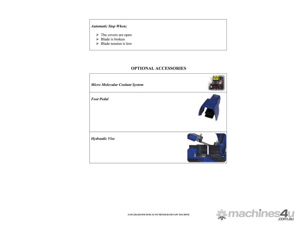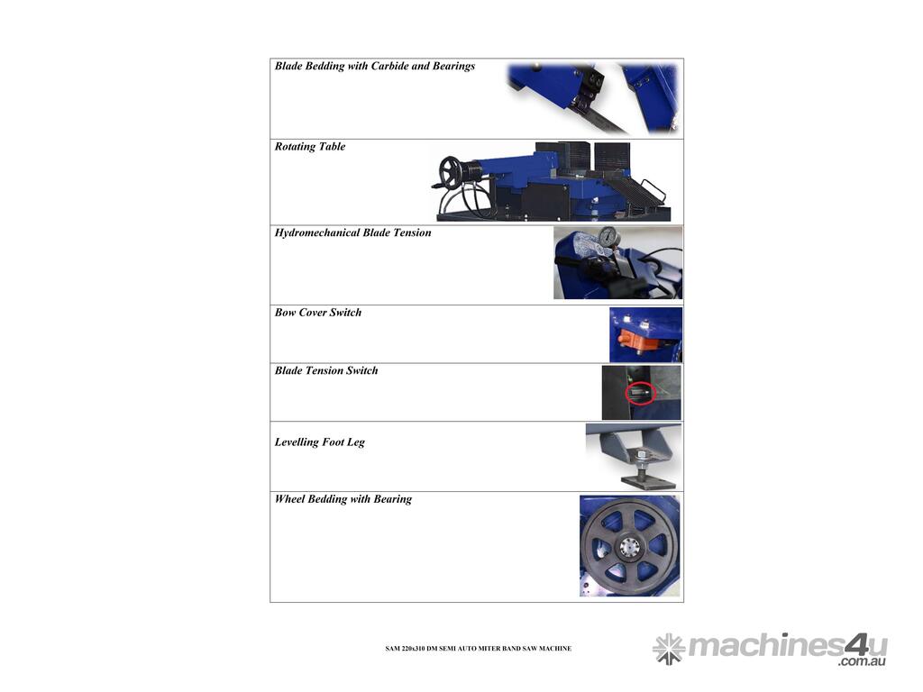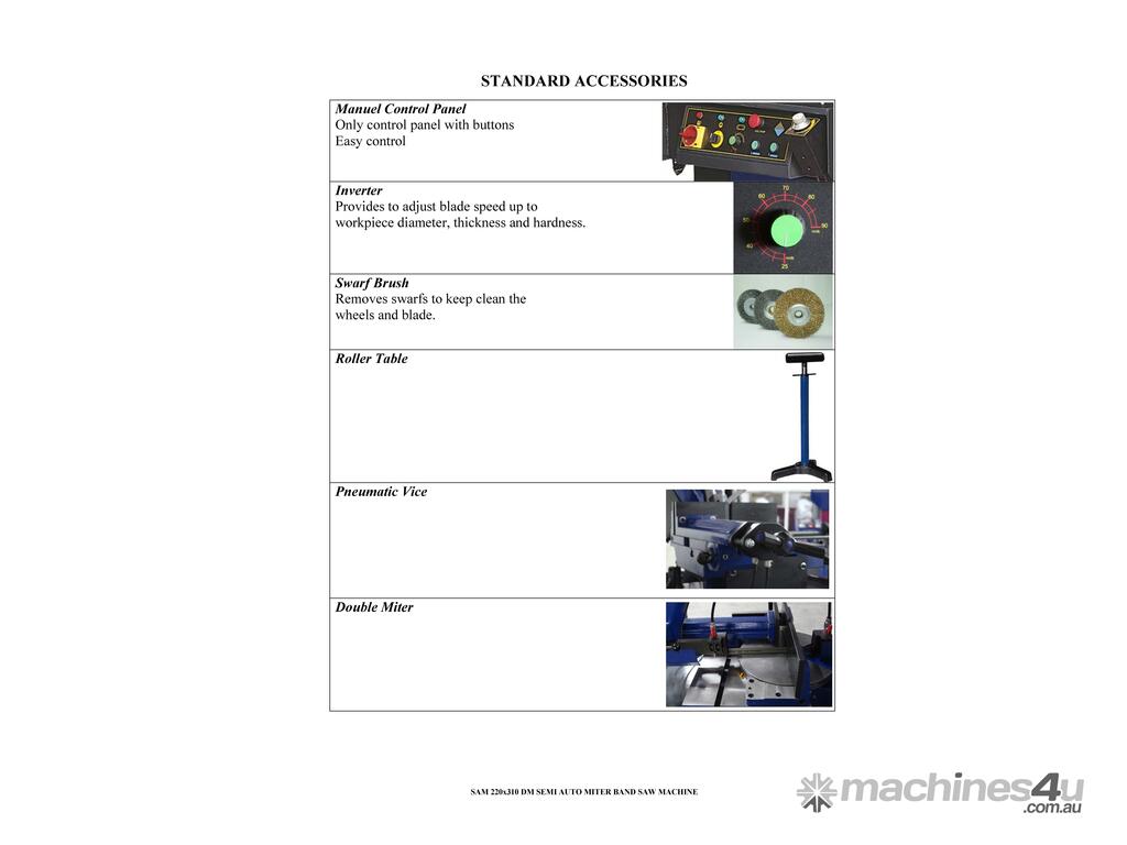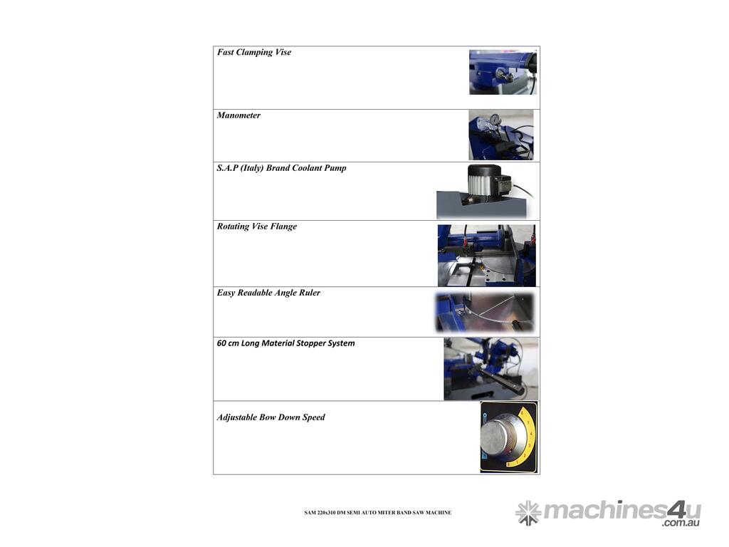 Smallest of our semi automatic machines the SAM 220×310 has a lot of High end features for its size. These machines comes as standard with Dual Mitre capability (Head can move both ways so material does not have to be flipped to cut an opposing angle). Invertor motor as standard for adjustable blade speed to get the perfect cut every time.
