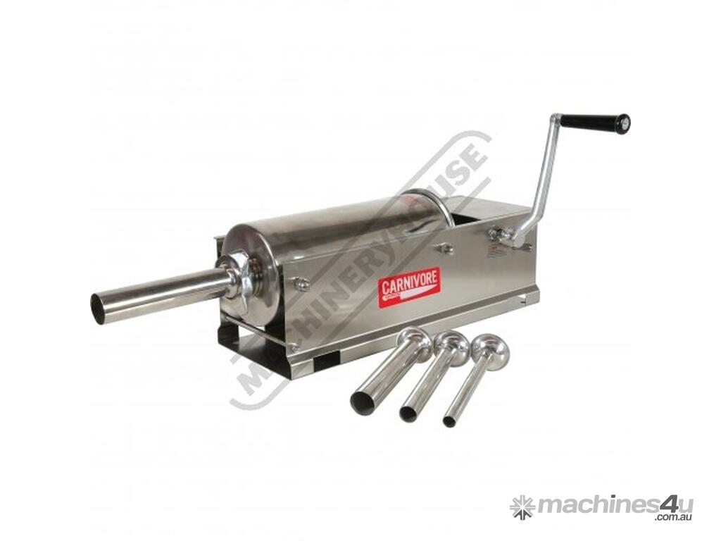 The Carnivore SST-5L Sausage Filler - 5 litre capacity, (also known as a stuffer) is the most practical, durable and reasonably priced sausage maker on the market. It has predominantly been constructed from stainless-steel, and features rack & pinion plunger drive which does not suffer from the common breakages that can occur in many other inferior models.