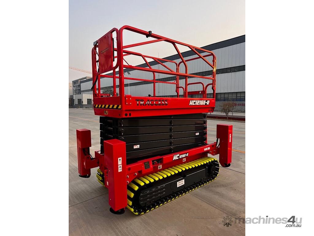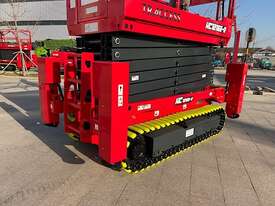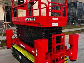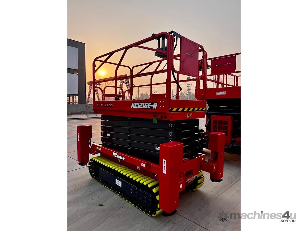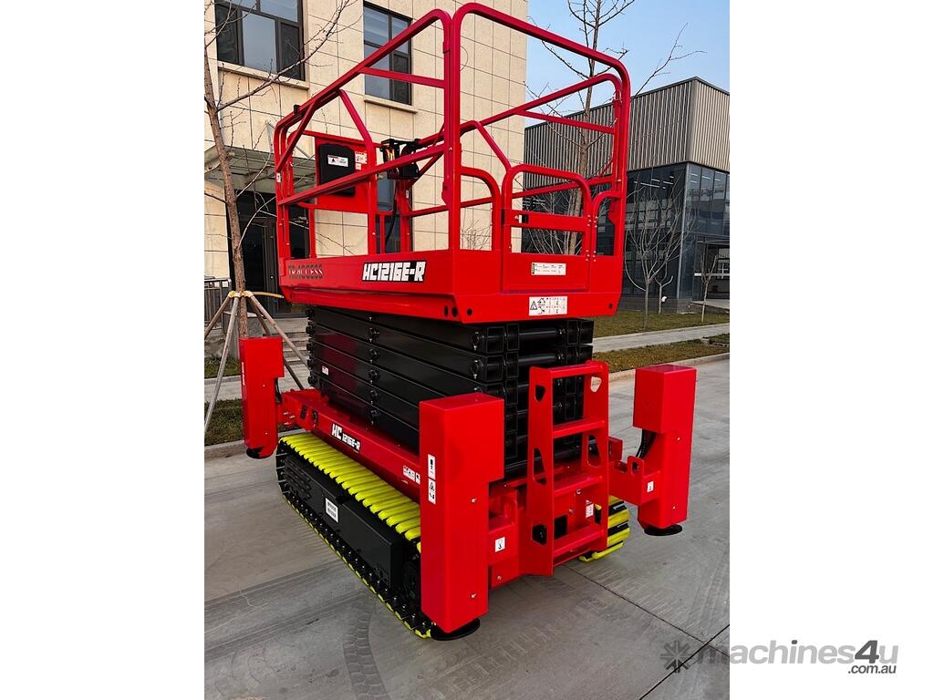 • Compact Design: Narrower and shorter than conventional wheeled rough terrain scissor lifts, making it easier to