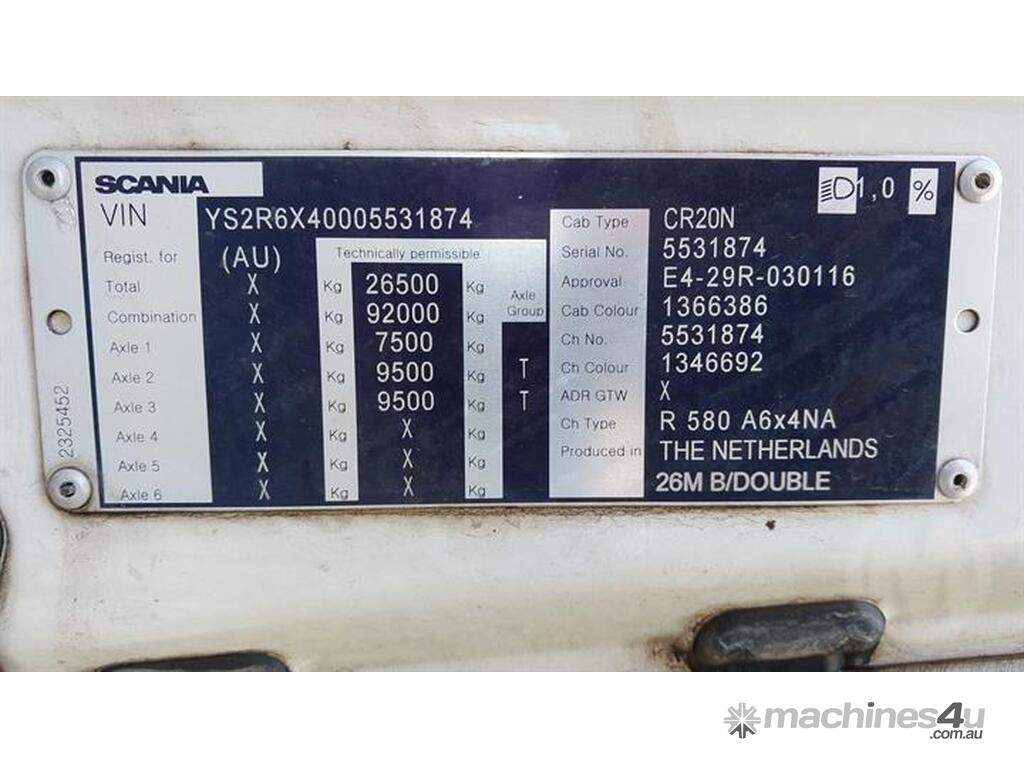 Options: Air Scoop,Air Conditioning,Power Steering,Alloy Wheels,Bull Bar,Drivers airbag,Seat Belts,Sleeper,Service Books,Turntable,Airbag Checked