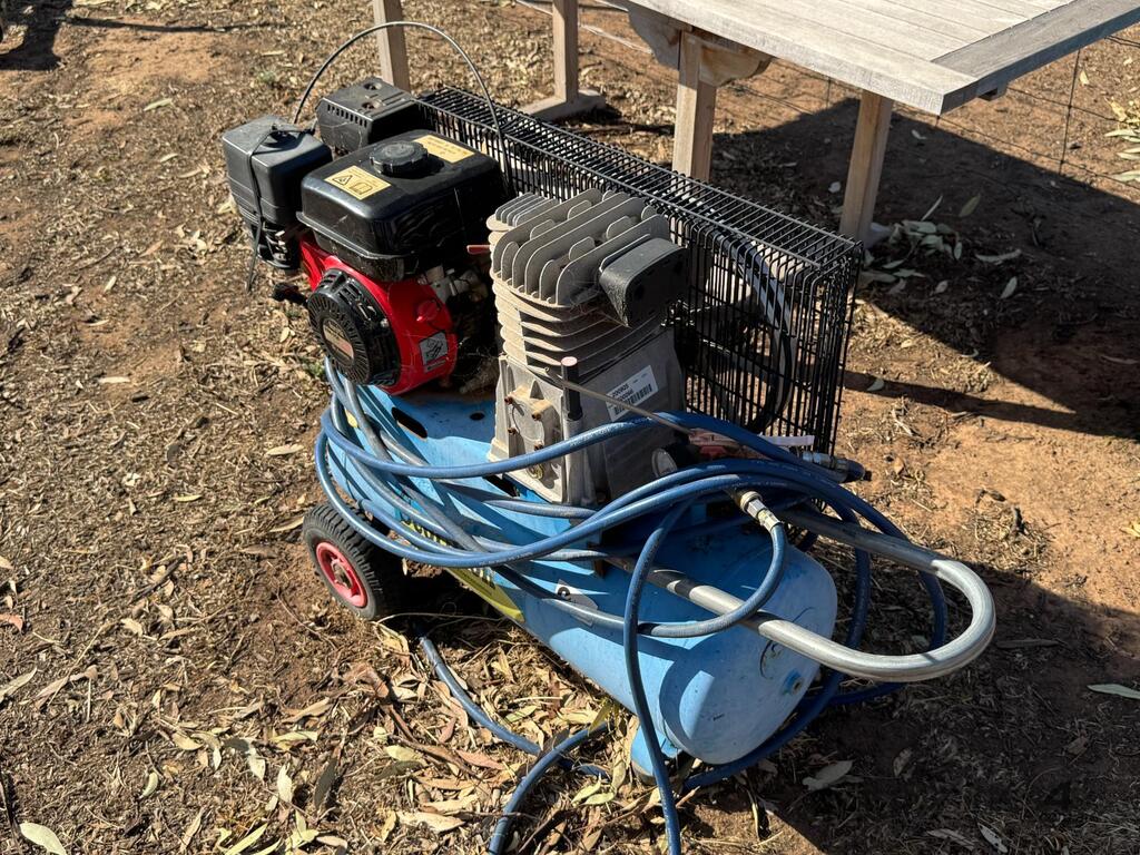 Petrol drive, B3800B Series, Scorpion HM-168 pull start engine, comes with hose and air nozzle, fair wear and tear for age. For further information or to inspect the air compressor, please contact the owner Christian Ellis on or Elders Deniliquin agent Matt Horne on .