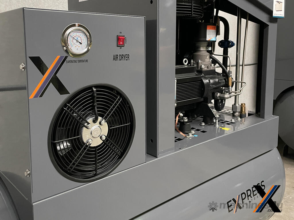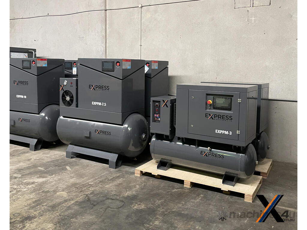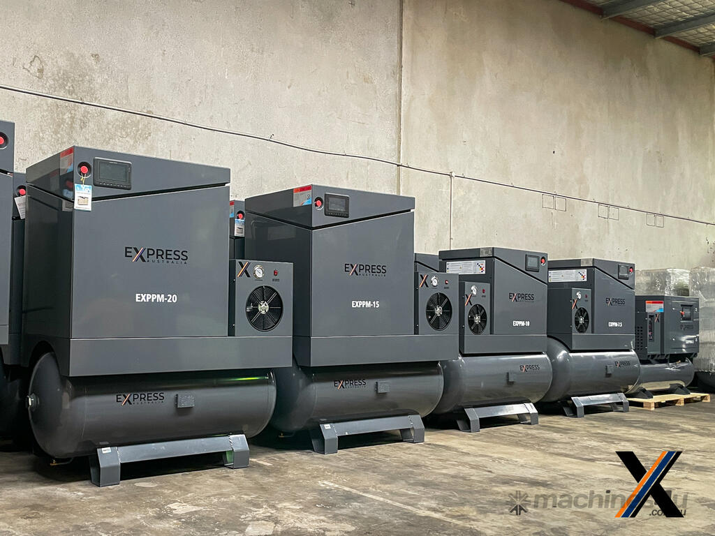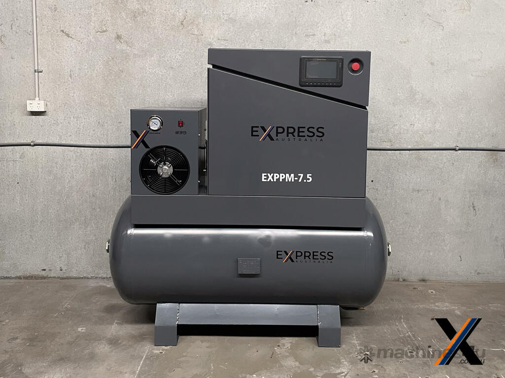 The EXPPM-7.5 air compressor from Express Australia is a reliable, energy-efficient solution tailored for small to mid-size industrial needs. Featuring a Permanent Magnet (PM) Frequency Drive and Variable Speed Drive (VSD), this compressor optimizes energy usage while delivering consistent performance.