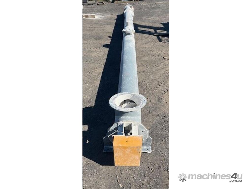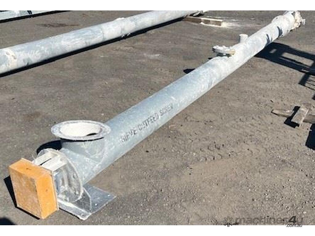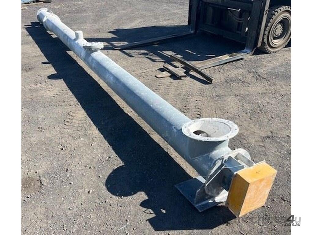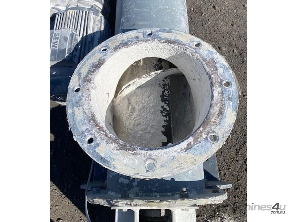 Mild steel pipe type screw conveyor.Heavy duty7 mm Screw thickness.200mm screw pitch250mm diam x 6.2m long4kw SEW 68 rpm. Drive 415v.Last used on Gypsum.