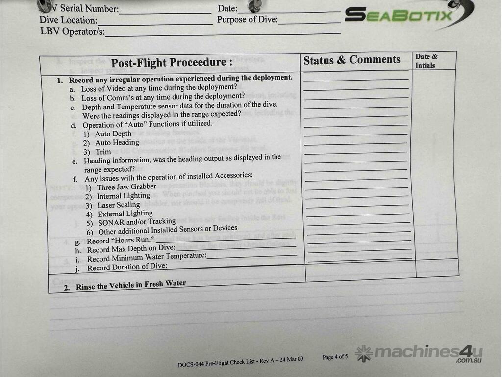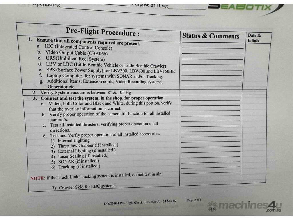 Seabotix LBV200SE-5 Underwater Vehicle, fitted with HPDC1501 Brushless DC Thrusters, Intergrated Navigation & Control Console, Sonar