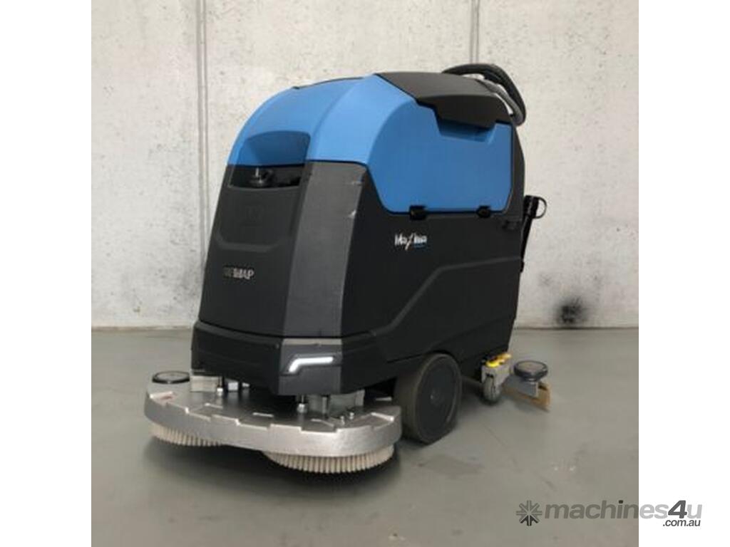 Second Hand Fimap Maxima Plus 60Bt Walk-Behind Battery Scrubber Dryer complete with scrub brushes, squeegee blades, batteries and on-board charger.