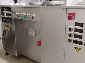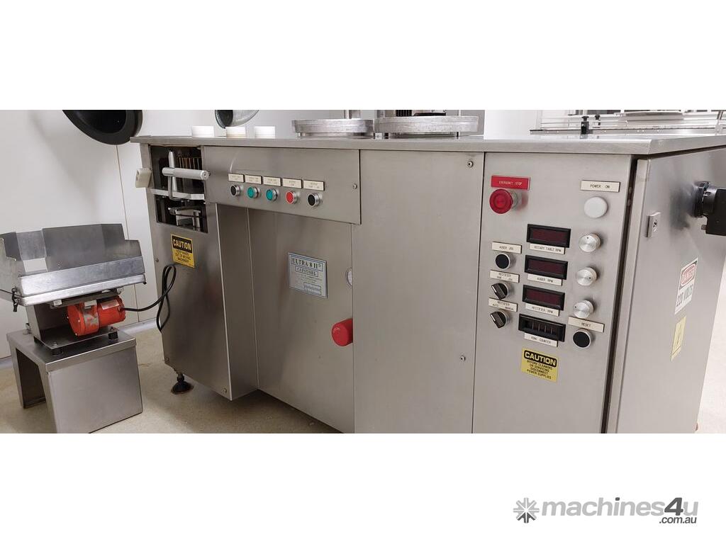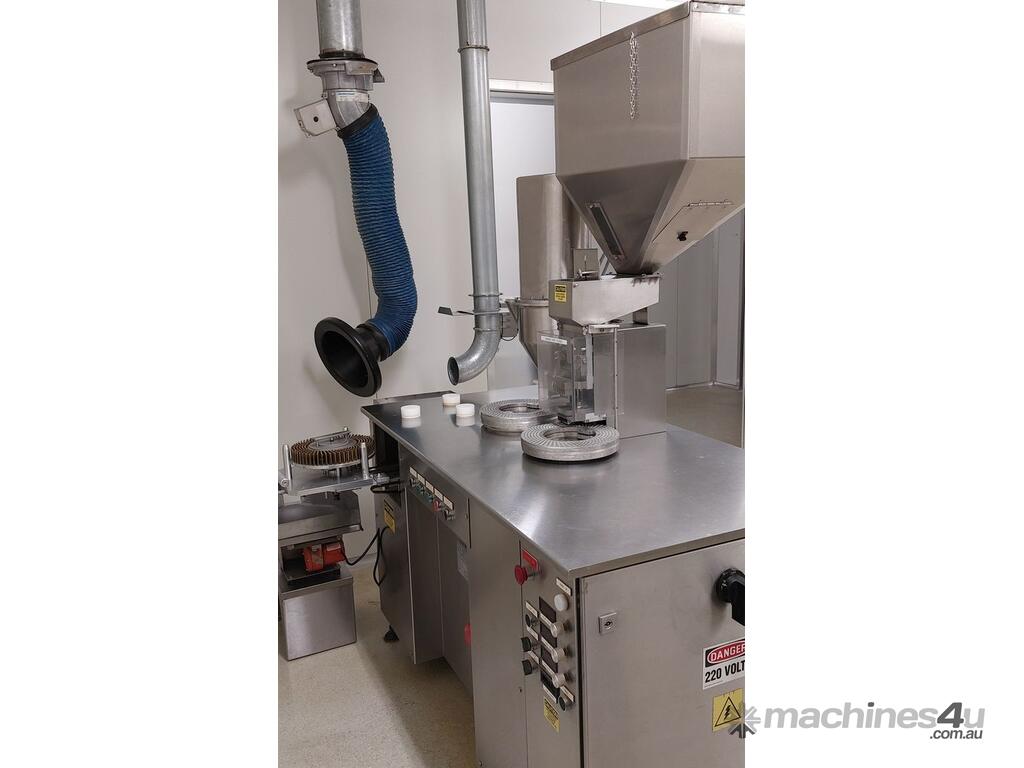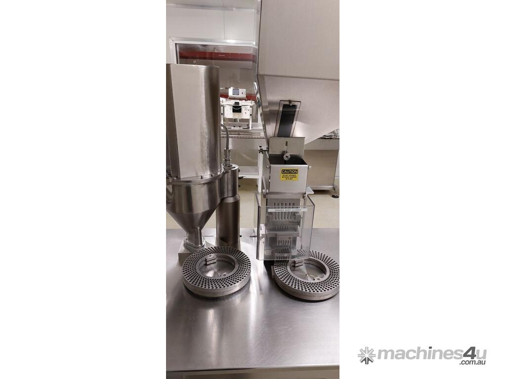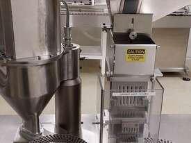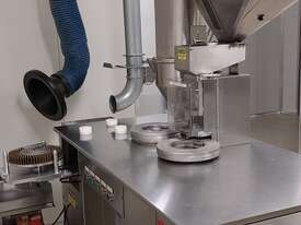 Semi-Automatic Capsule Filling Machine with Polisher, "Capsugel" Model Ultra 8 II, currently set up to do size zero capsules, complete with vibratory deduster and Polisher