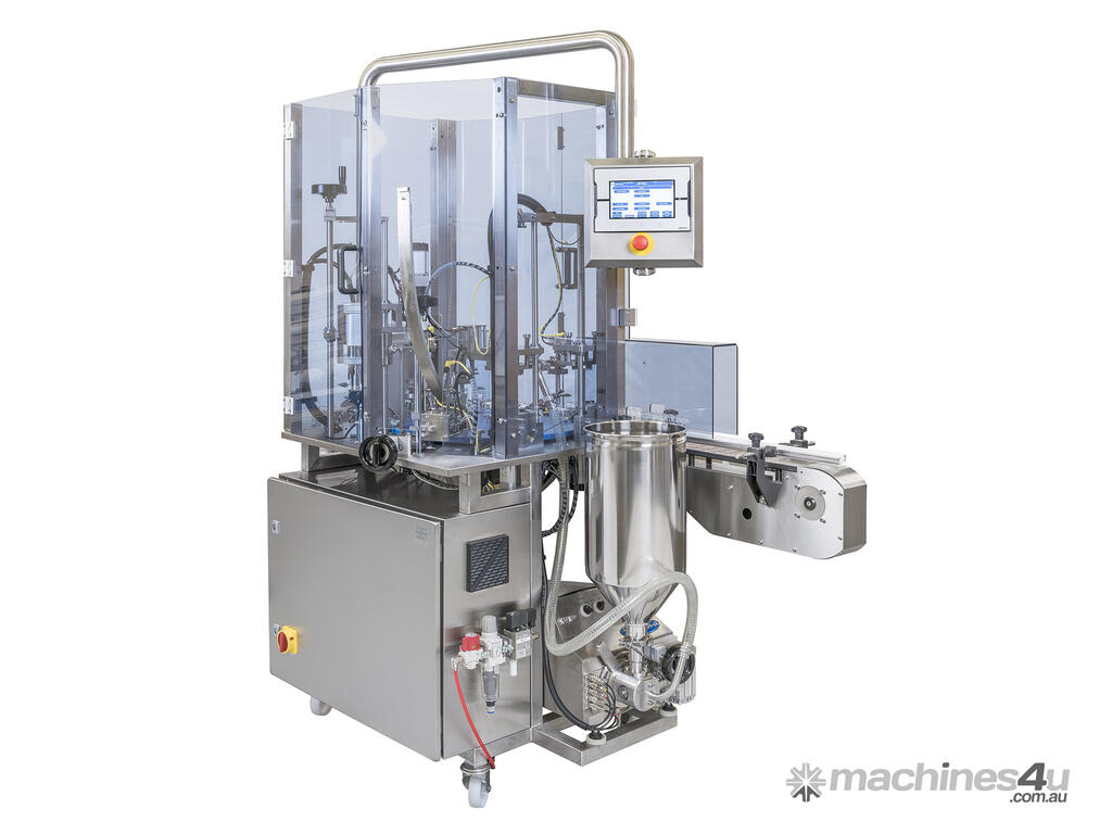 Versatile semi-automatic filler delivering accurate, hygienic filling of liquids, creams, gels, and thick pastes at up to 40 containers per minute.