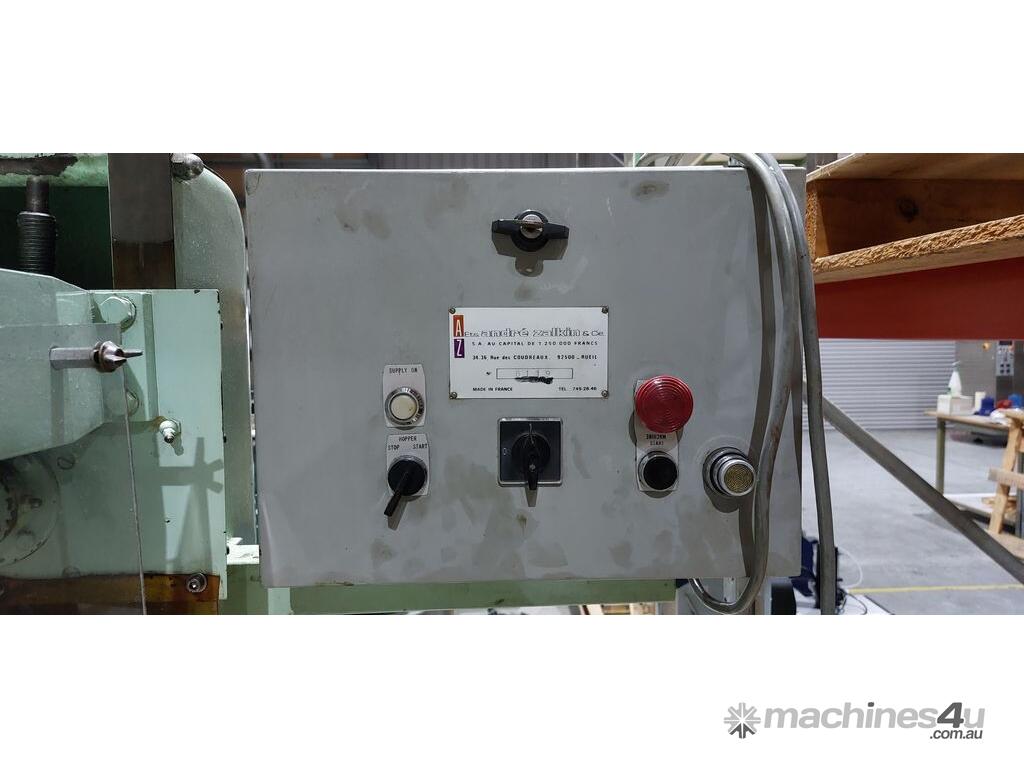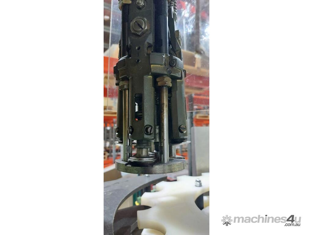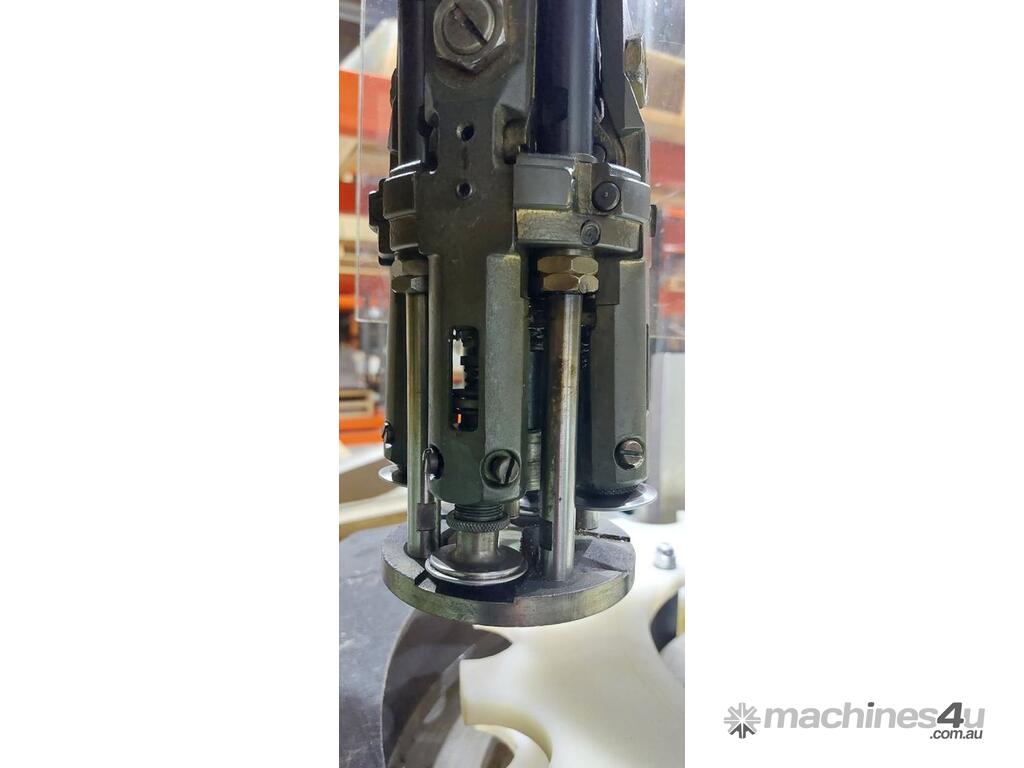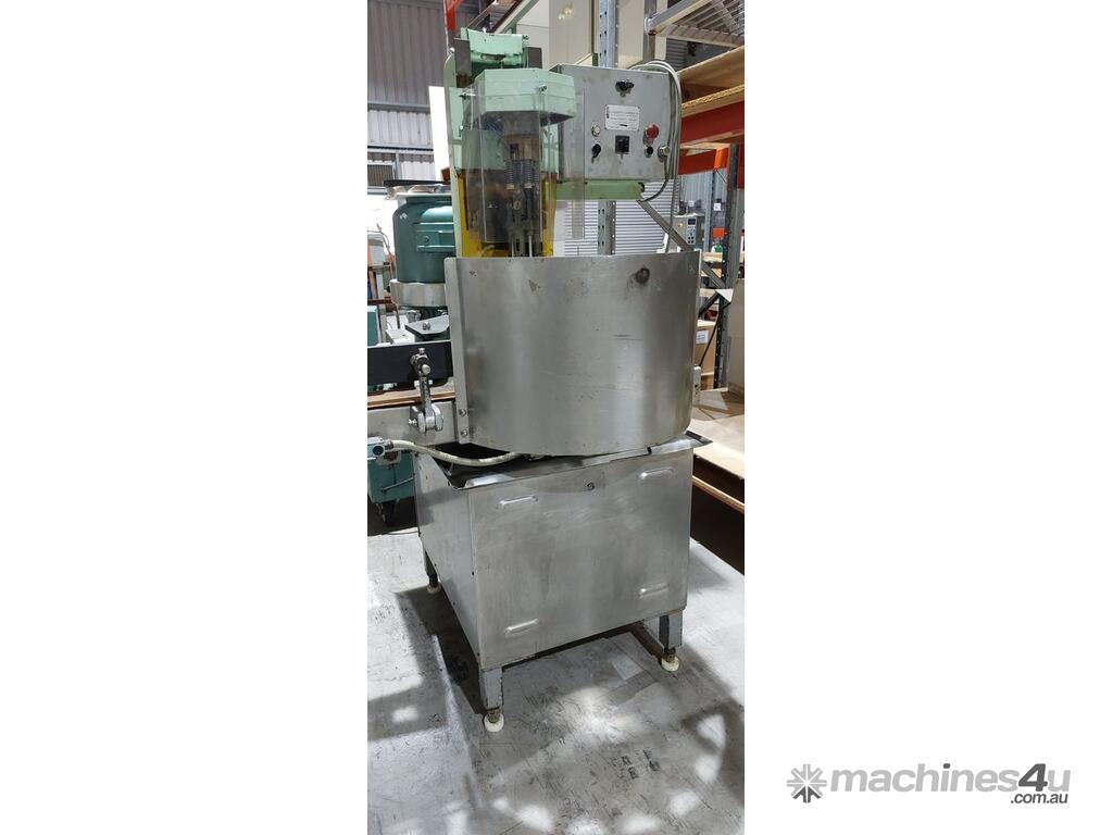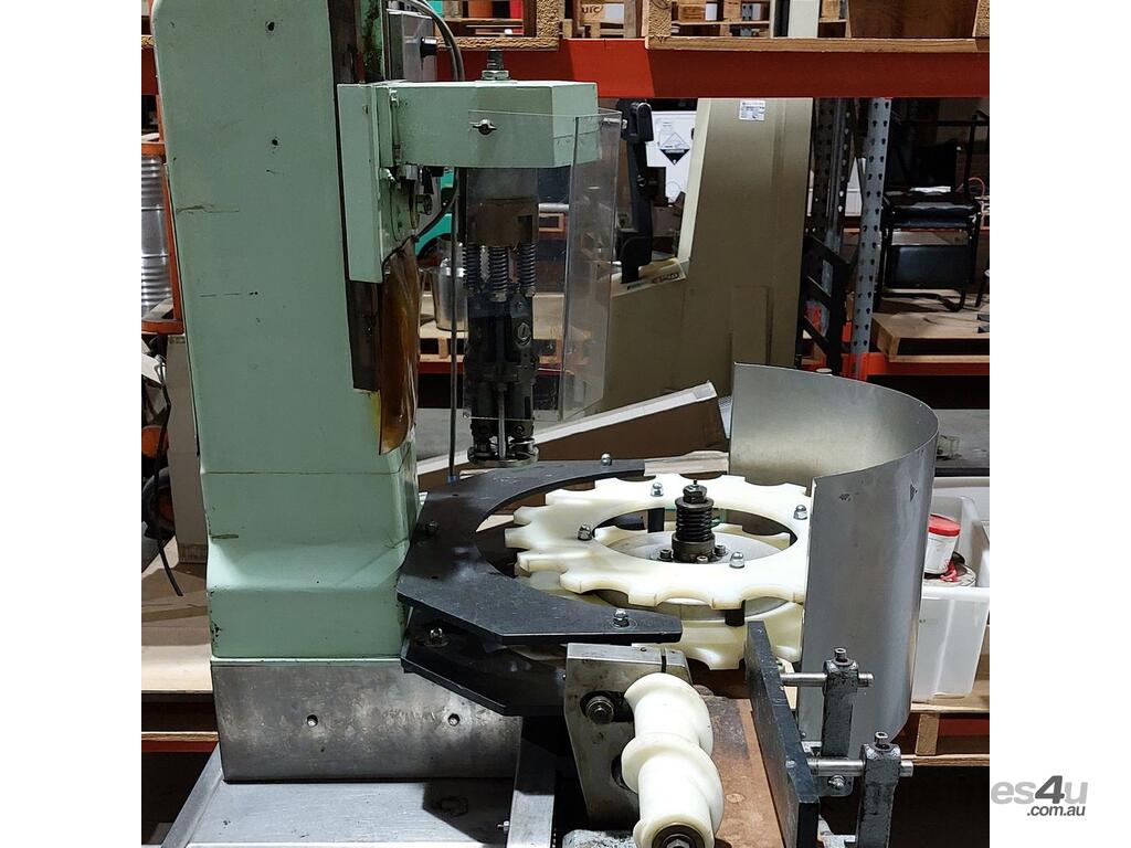 ROPP Capper "Andre Zalkin",automatic roll-on pilfer-proof capping machine previously used for wine bottle aluminium caps, fitted with scroll feeder and indexing star wheel for bottle transfer, suitable for aluminium cap application in beverage and liquid packaging industries