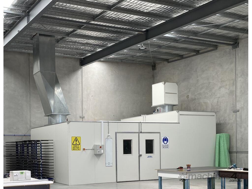 2020 Olympic Semi Down Draft fully enclosed spray booth, small blow off area attached, small vented paint room attached, all pulled apart by Olympic ready for you to organise transport.