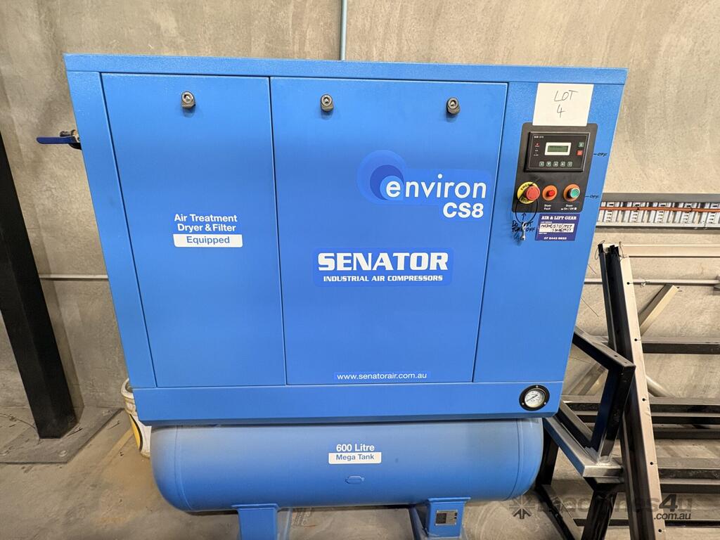 1x Senator Rotary Screw Air Compressor, Model: Environ CS8, S/N: CS824033. Inspection Recommended, See Photos For More Details. A Buyers Premium of 8.25% (GST Inc) Will Be Applied.