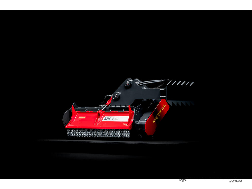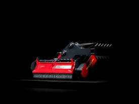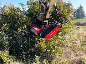 The mulching head BMS-F is a special attachment to be applied on railroad or special vehicles or forwarders, working to maintain railways and other areas difficult of access. This SEPPI M. excavator mulcher has a very strong casing and strong bearings that make it very resistant, no matter in what position it works. The fixed hammer rotor with strong bearings for high performance even in vertical positions is powerful and exposed and particularly strong to bear frequent vertical mulching. An exposed, aggressive rotor is very effective against thick vegetation of up to 20 cm [8?] in diameter.