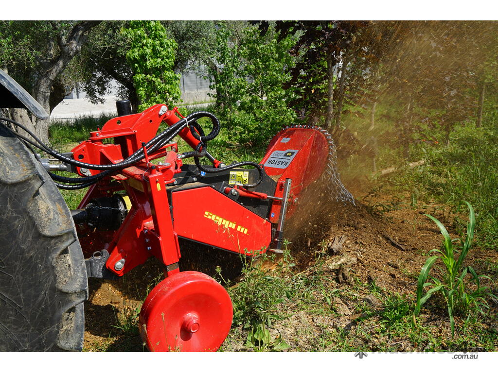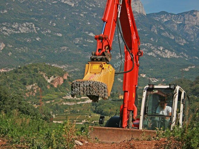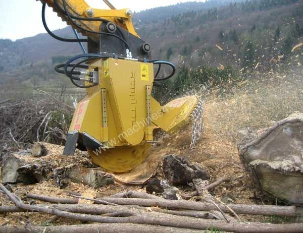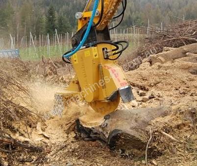 KASTOR hyd grinds the stumps as deep as 50 cm [20”] below the surface and any diameter. Any stump diameter can be eradicated, by swinging the excavator arm from one to the other side. The result is a fine mulch that may be easily incorporated into the soil and mixed with the ground, which fosters a quick decomposition. The stump has been removed completey, the soil is ready for new planting. The Rotor disk is equipped with very aggressive HRC-tooths. The specially developed angle of cut allows an ideal use of power. The Interface for spider excavators, available as an option, also works as a shovel. It helps mixing the ground stump chips into the soil, so to completely cover the whole left by the removed stump.