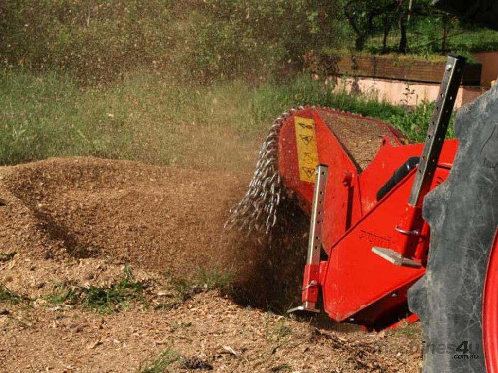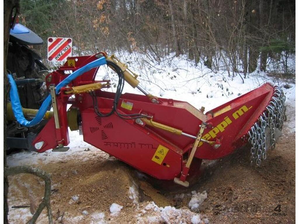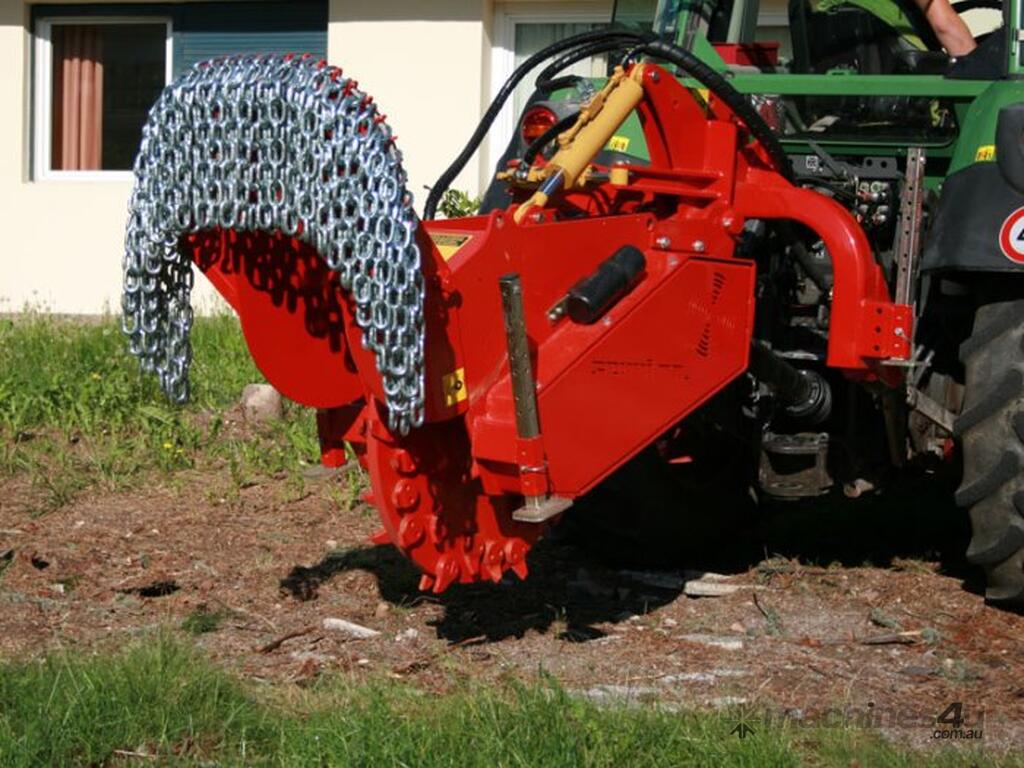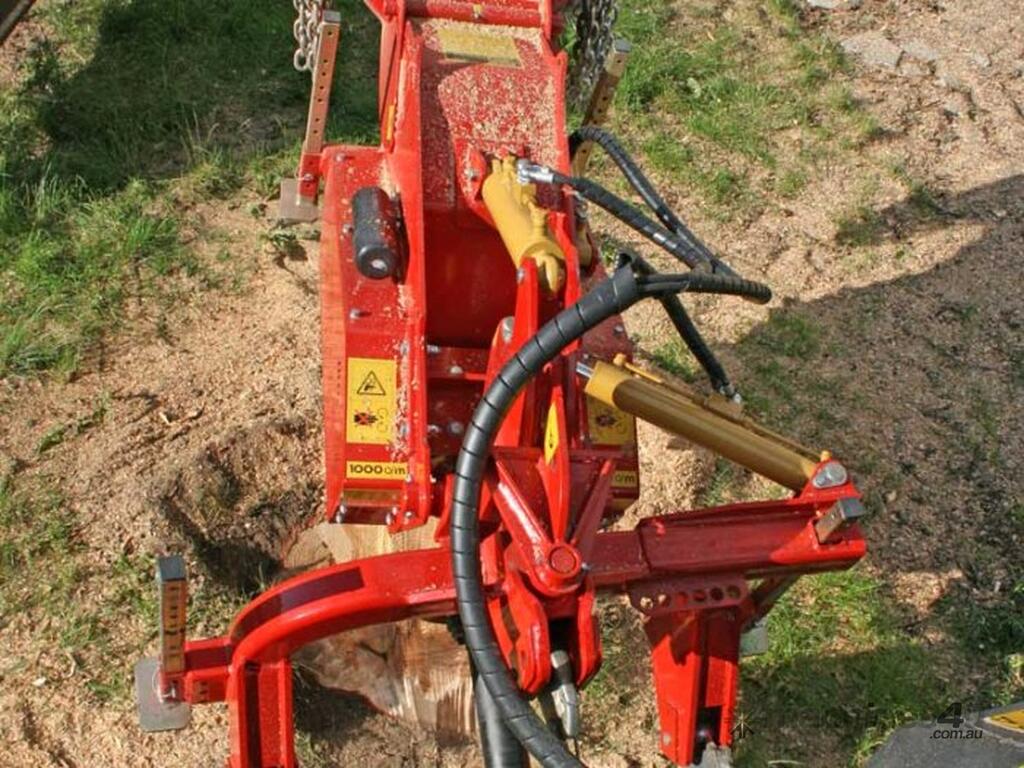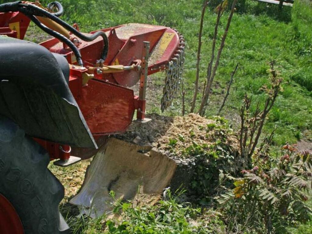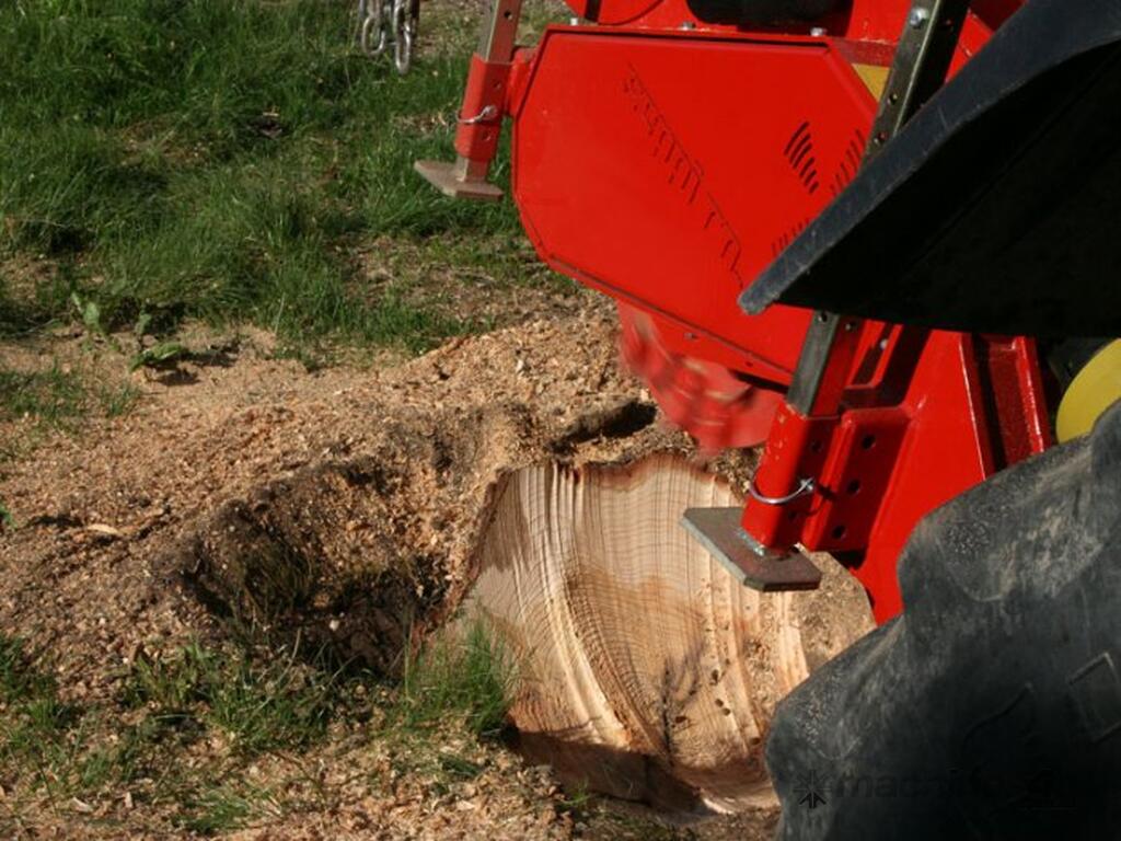 With the strong KASTOR™ stump cutter elimination of stumps and wood is easy and very fast, no matter what their diameter. A circular mulching disk moves and chips away the wood. The cutter wheel movements are controlled by hydraulic cylinder, to push the cutter wheel teeth laterally through the stump and to raise and lower the cutter wheel. The rotor-disk of KASTOR stump grinder with very aggressive fixed carbide teeth can completely destroy tree stumps of any diameter permanently.