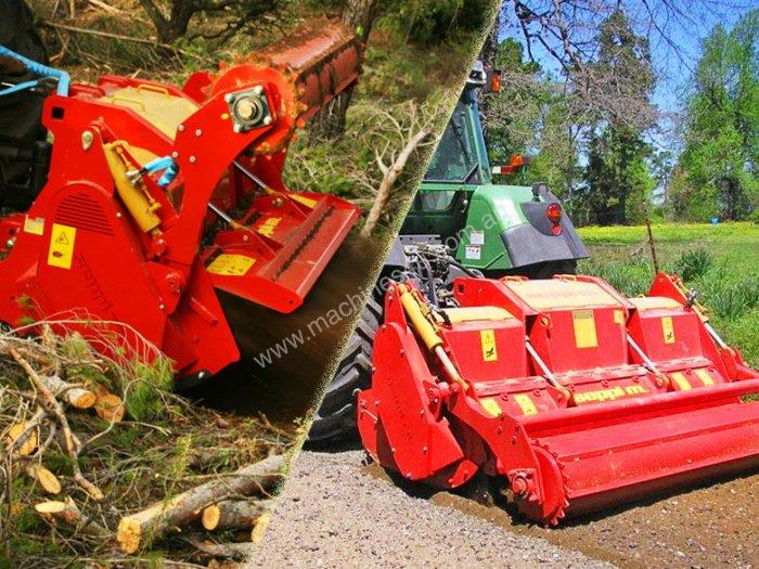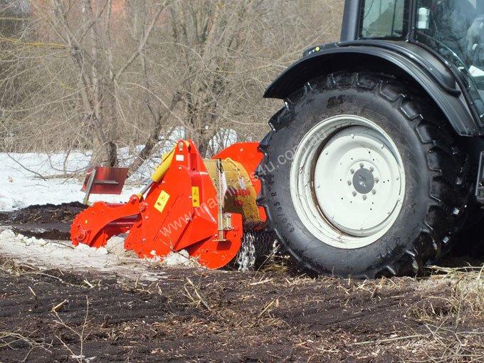 Working with 2 speeds: depending on the job it is possible to adjust the speed of the PTO in the tractor: 1000 rpm for mulching wood; 540 rpm for stone crushing and soil tilling.This feature allows for a higher torque and hence better processing both during mulching wood (fast pace) and milling rocks and soil (slow pace).