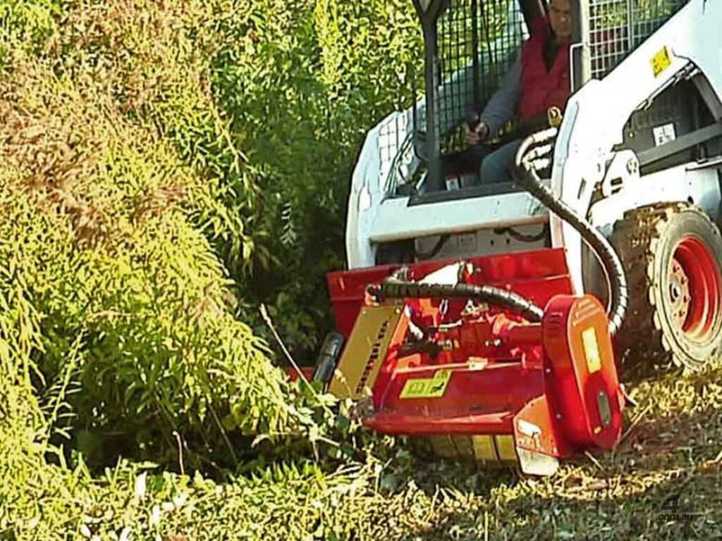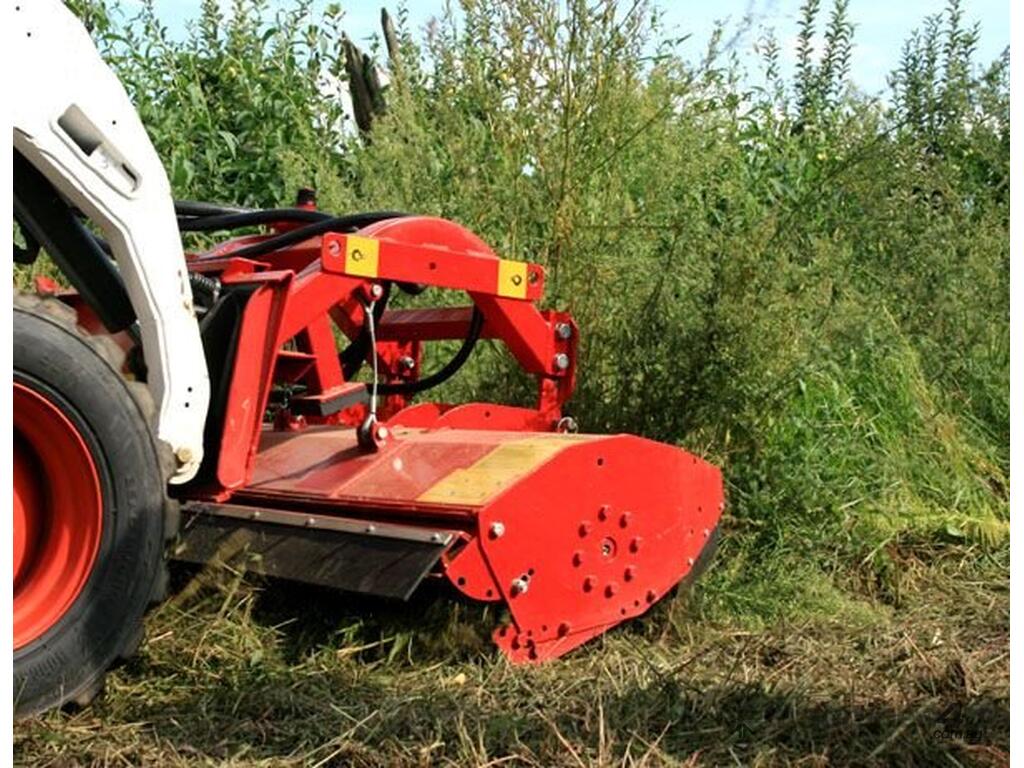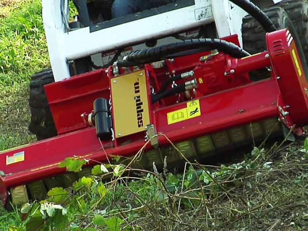 The new version of small but strong flail mulcher SMWA skid steer™ mulching grass, prunings and bushes up to 5 cm [2“] in diameter. Made of wear-resistant steel with counterknives inside the casing and with rotor shaft with SMW™ flails is this mulcher ideal for mulching in vineyards and orchards, land clearing, right of way management and green space maintenance. New is also the STOPSAFE™ Safety valve that stops the machine when lifted from the ground and floating attachment.