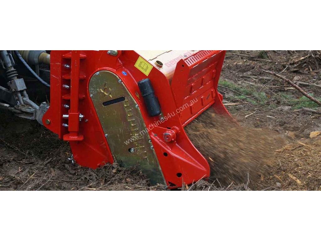 Very strong frame, for a very long life with reinforced frame made of wear resistant S420 steel. Chassis with internal replaceable WEAR PLATES. rows of tempered COUNTER CUTTERS inside the chassis gives a perfect result while mulching. New generation patented rotor V-LOCK, more exposed for tilling the soil, with efficient hammer combination of the new type, ULTRA MONO PROTECT + lateral EXTREME with tungsten carbide tips at points most subject to wear, makes the stump grinder STAR-FC very resistant. Anti-wear hammer supports protect the hammers and rotorshaft. The exchange of the tools is very simple. The security and long life of the transmission guaranteed by dual safety mechanism with friction clutches and automatic torque limiter.