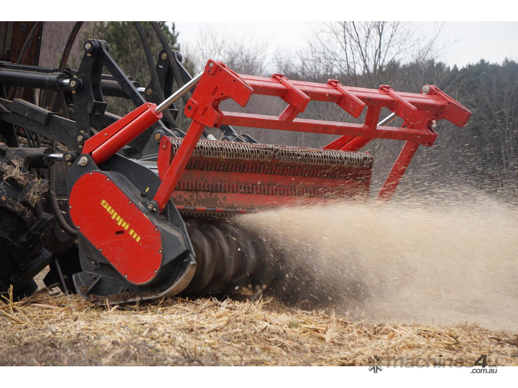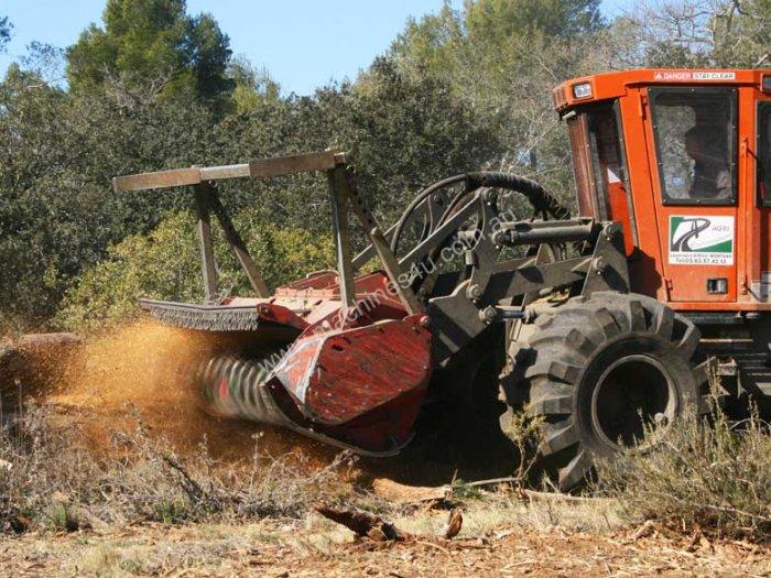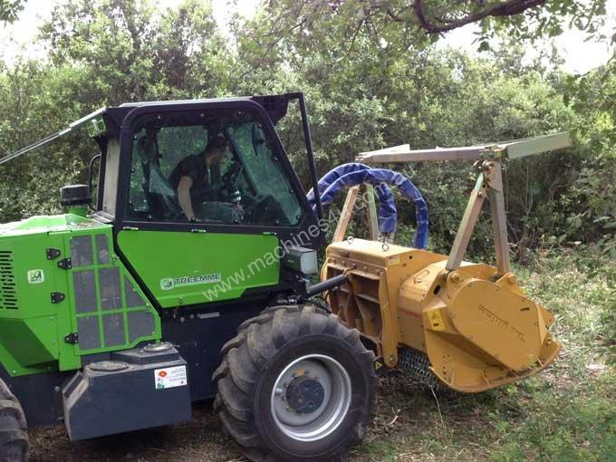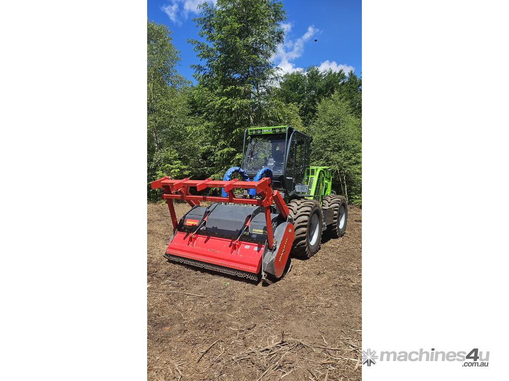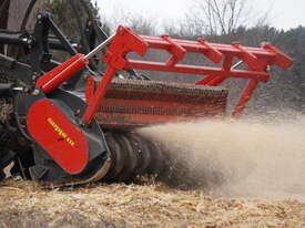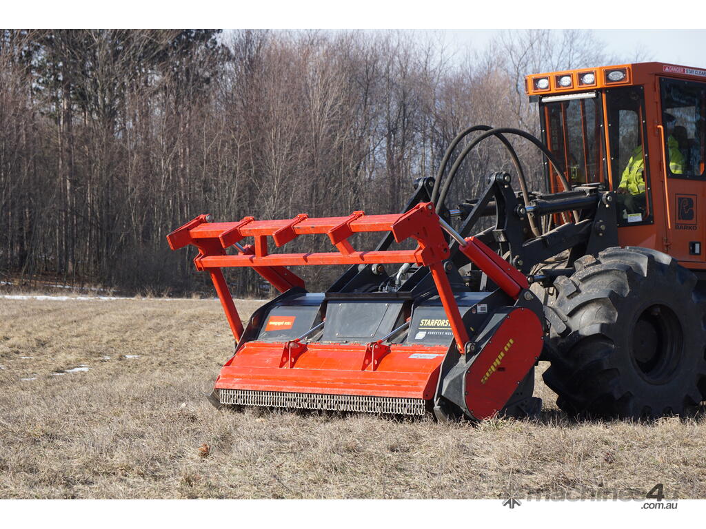 The new version of tree shredder STARFORST comes with universal attachment interface. It is the right mulching equipment for medium sized prime movers up to 440 HP. Fixed hammer rotor: tool with tungsten carbide inserts is easily interchangeable (patented). Large exposure of the rotor to the trees promotes fast mulching. Different types of guard frames for felling operations and to protect the tractor available.