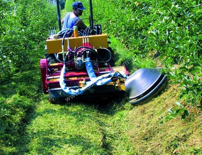 The XSC™ outrigger rotary mower for inter-row mowing can be easily mounted via X-FAST™ to the mulcher or to the accessory carrier PORT-X™. Sensitive touchers allow to mow around obstacles and trees without shaping the tree. Bearings and greasing has been improved.