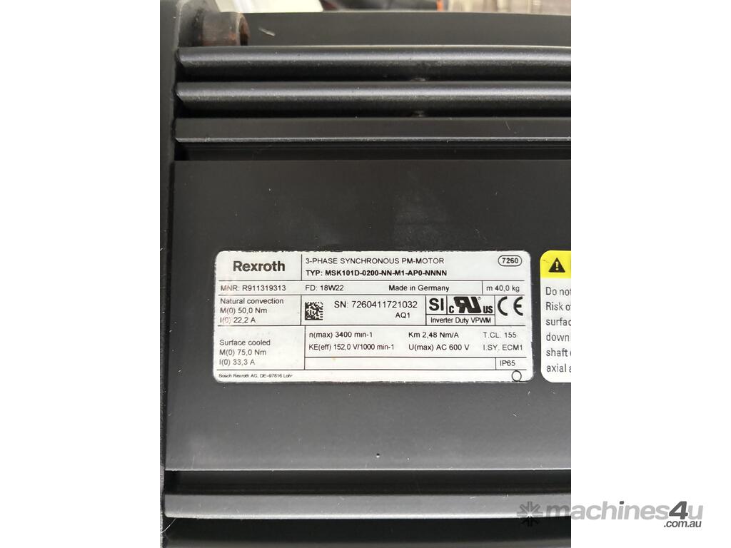 - Rexroth Servo Motor (Model MSK101D) – 3400 RPM, 600V AC, suitable for dynamic load testing