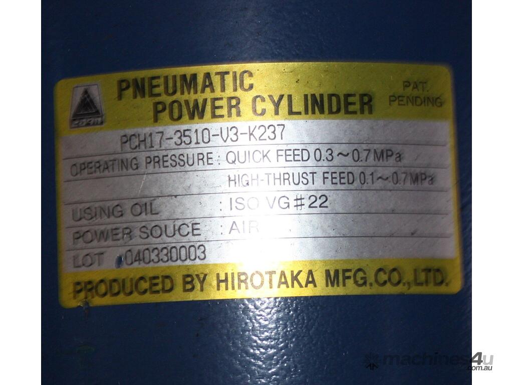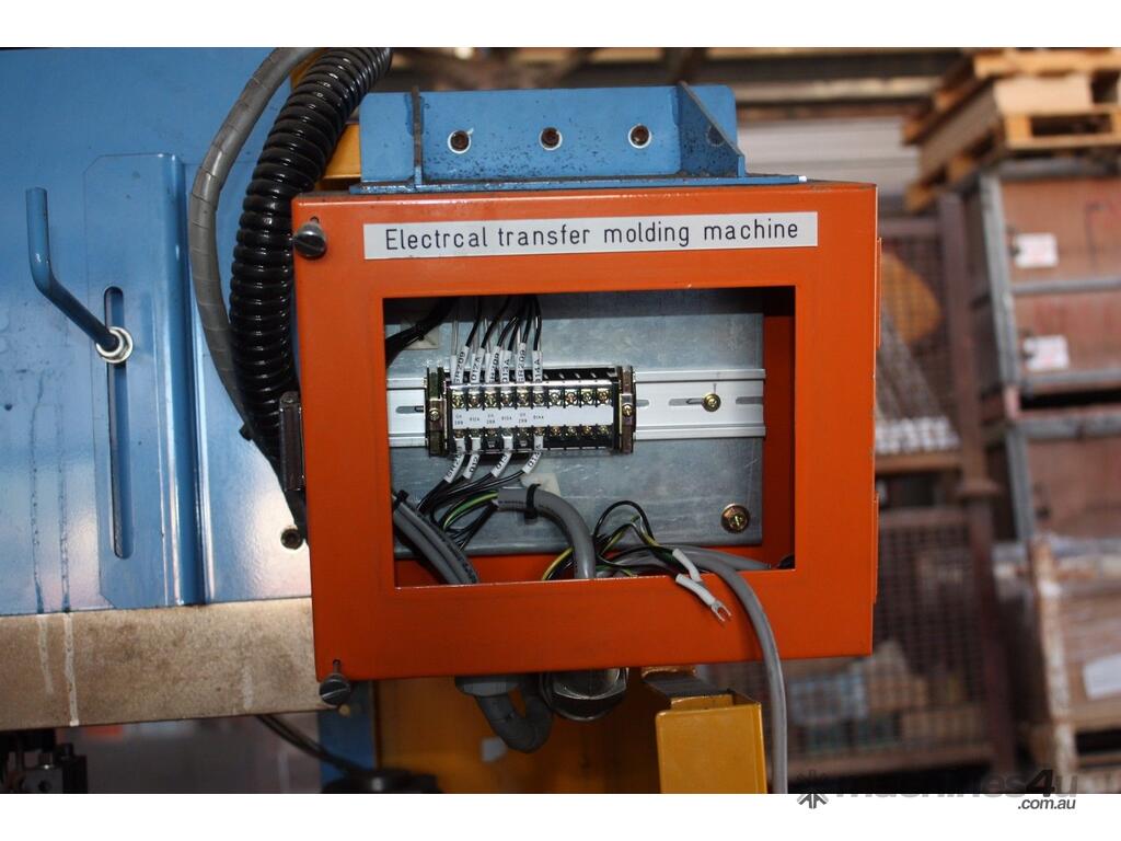 This Machine uses an air powered Hydraulic power cylinder ( utilises an internal pressure intensifier ) for the clamp stroke and a servo motor screw powered electrical system for the transfer / injection stroke