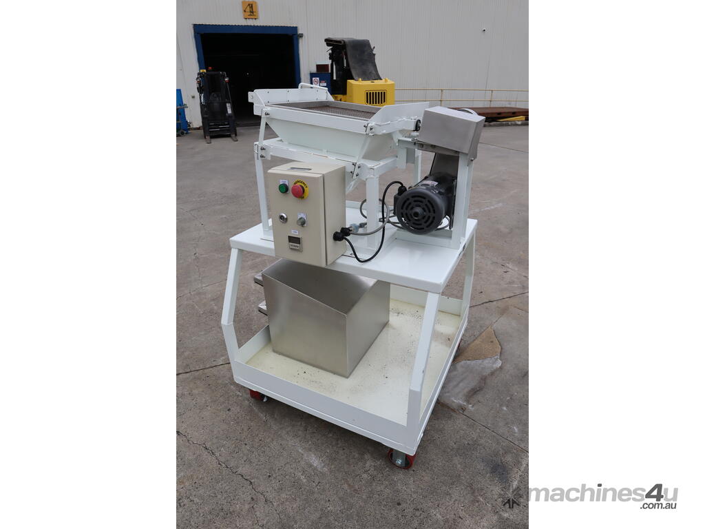 Designed to separate certain sized bits from a bulk portion via a shaking screen.