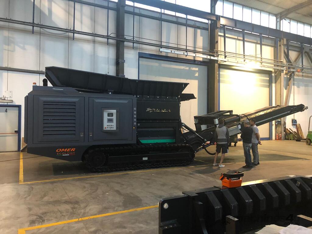It can be fixed or movable, with electrical or diesel power engine. In both cases the transmission is hydraulic. In the movable configuration the machine is mounted on mobile tracks and it includes a conveyor belt and a built in magnetic separator. The handling of the shredder is tracked through a radio-control for complete safety.