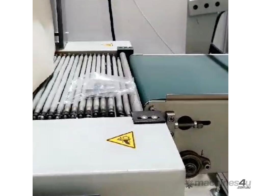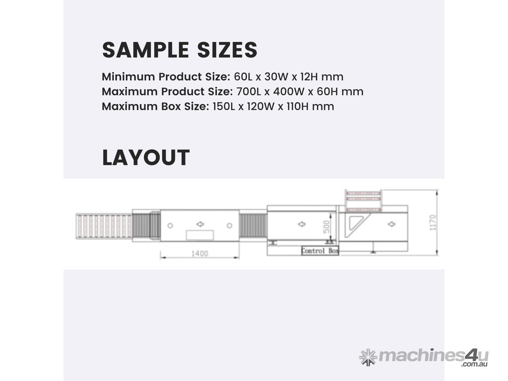 Includes all conveyors and out-feed roller. Ready to plug in and start packaging.