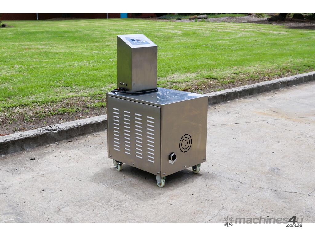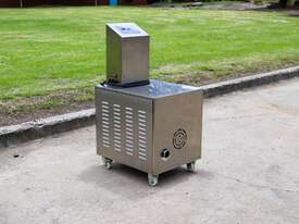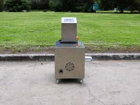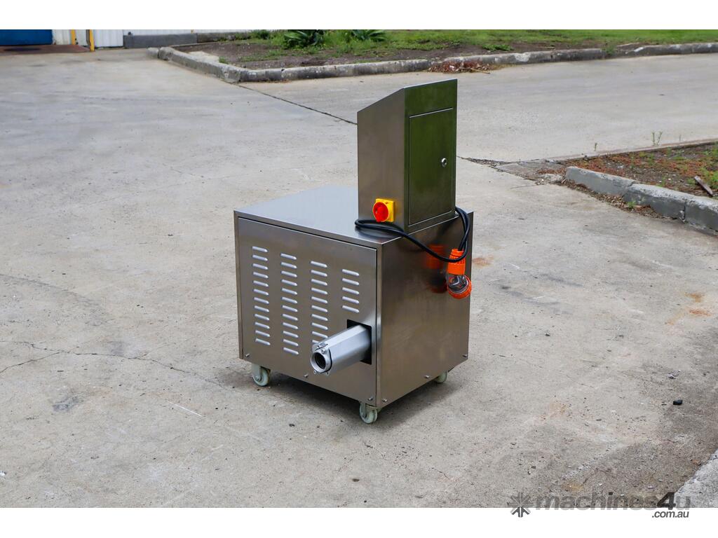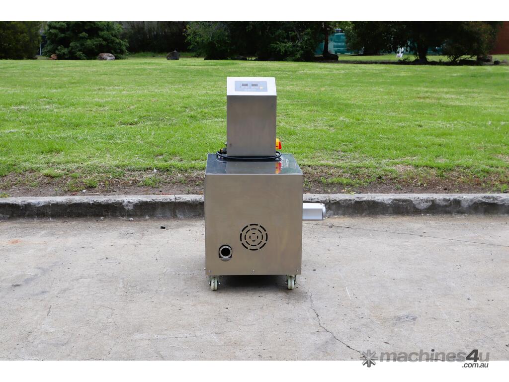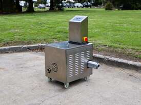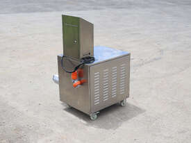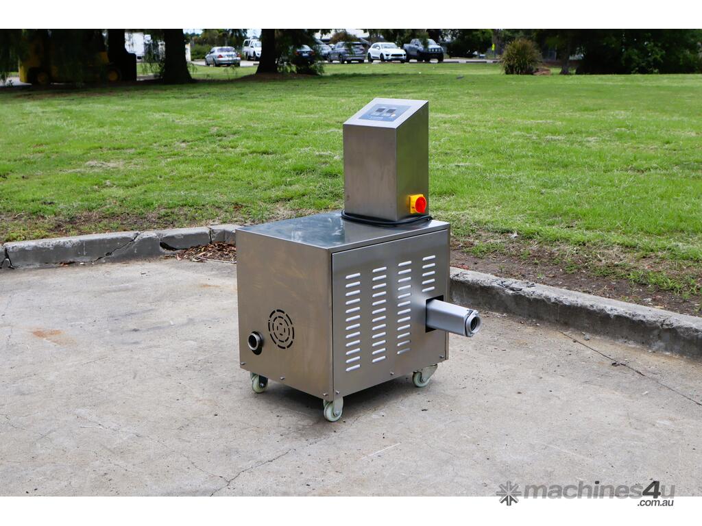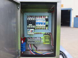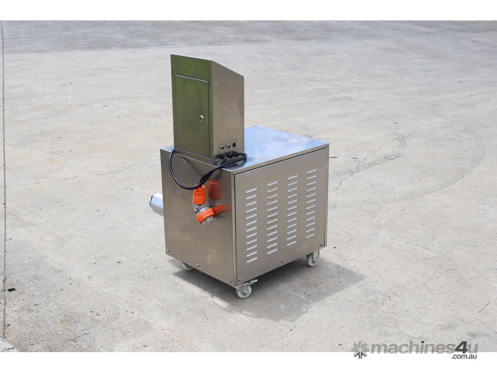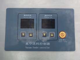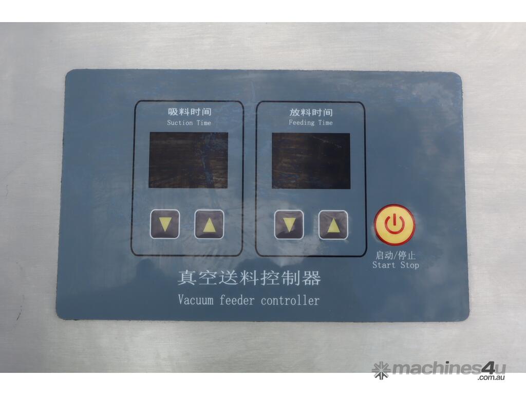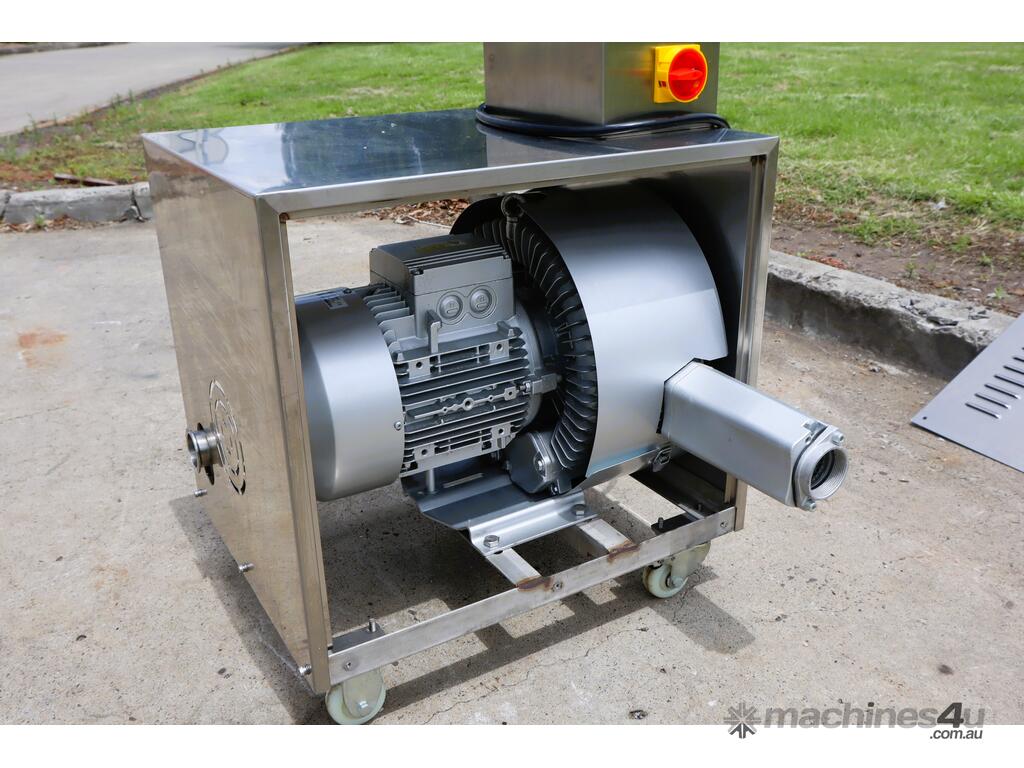 Side channel blower fitted inside a stainless steel housing in excellent condition. Great for standalone operation or integration into existing production lines. The unit is mounted on castors for easy positioning and features a simple digital vacuum feeder controller for setting suction and feeding cycles.