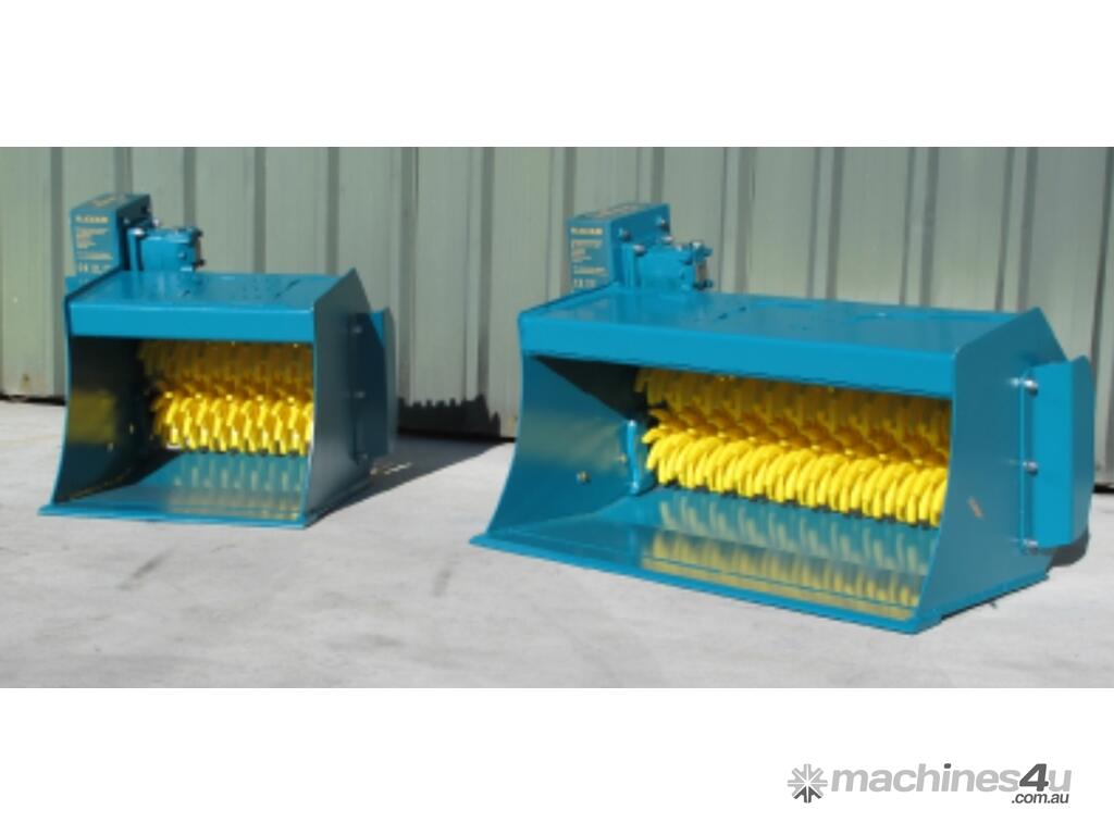 The star bucket has a unique screening action that rotates the material in a similar manner to a rotary / trommel bucket but has the benefit of rotating star discs agitating and clawing at the material as it turns. This is achieved by mounting star shafts on a large arc forming the back and top of the bucket.