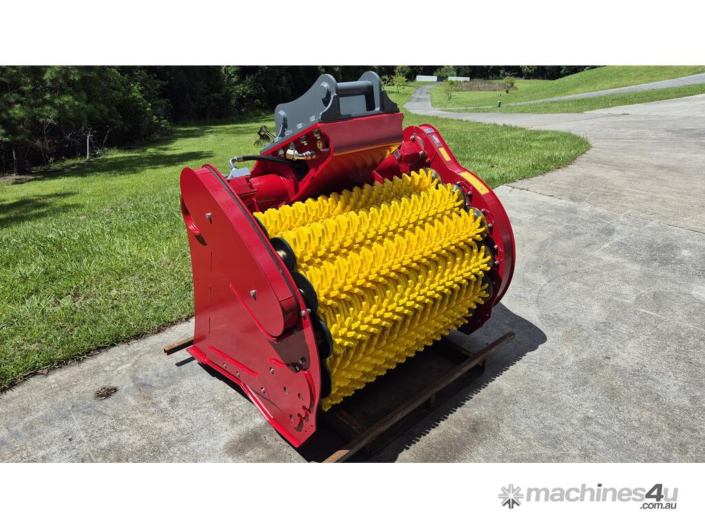 The star bucket has a unique screening action that rotates the material in a similar manner to a rotary / trommel bucket but has the benefit of rotating star discs agitating and clawing at the material as it turns. This is achieved by mounting star shafts on a large arc forming the back and top of the bucket.