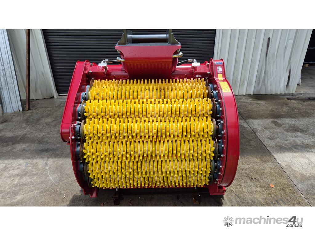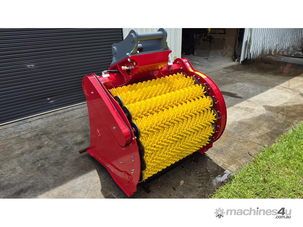 The star bucket has a unique screening action that rotates the material in a similar manner to a rotary / trommel bucket but has the benefit of rotating star discs agitating and clawing at the material as it turns. This is achieved by mounting star shafts on a large arc forming the back and top of the bucket.