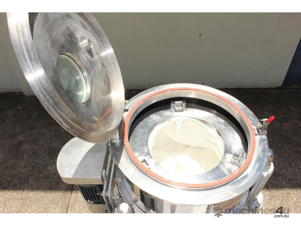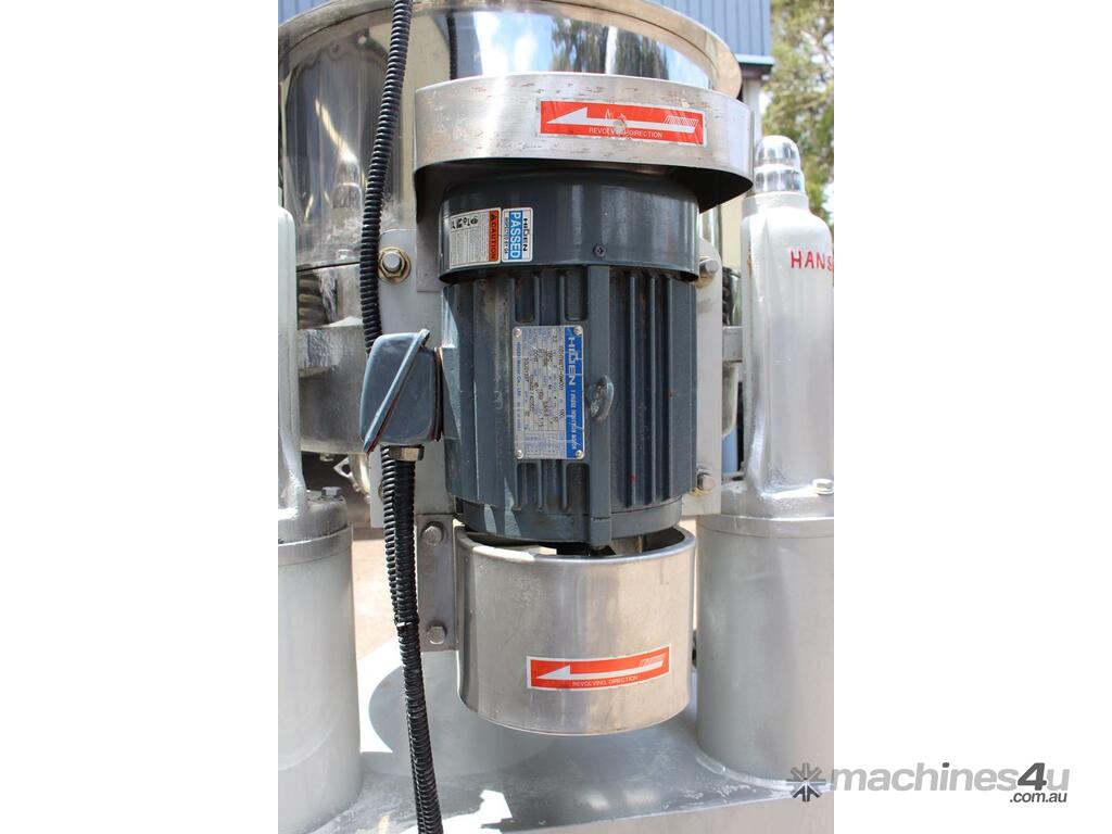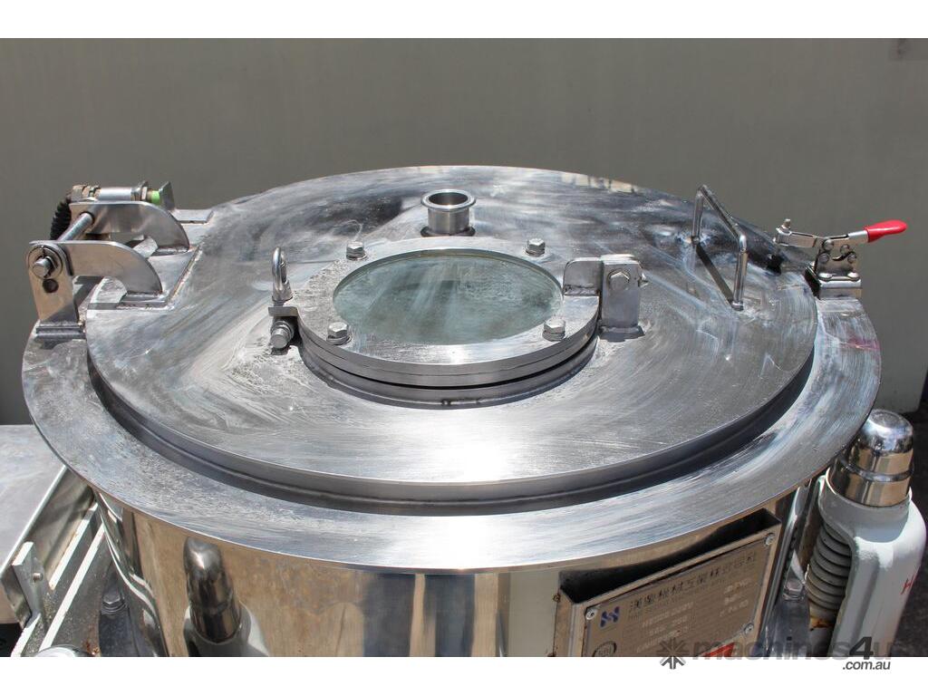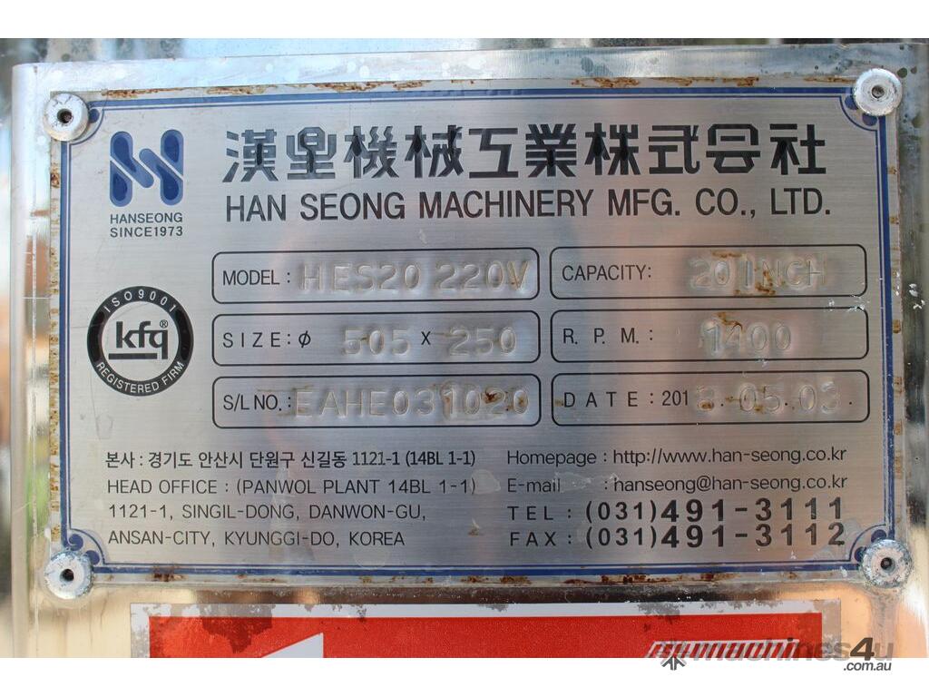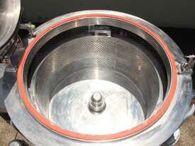 Sievebag Centrifuge, "HANSEONG", Model HES20, capacity: 20 inches, stainless steel wetted parts, driven by 3 phase 2.2kw 1430 rpm motor, mounted on steel base, overall dimensions (L x W x H): 1600 mm x 1300 mm x 2000 mm, made in Korea