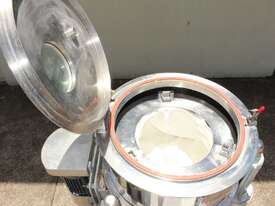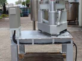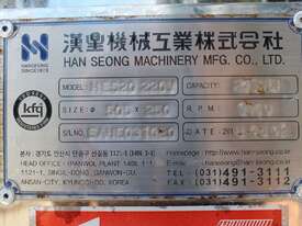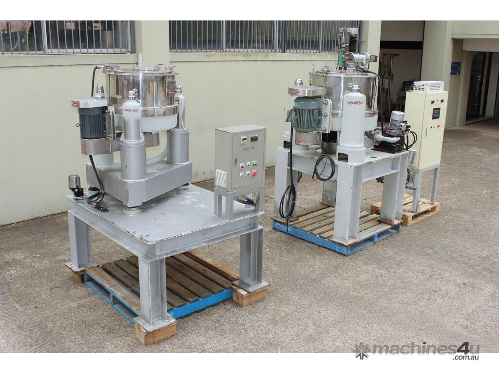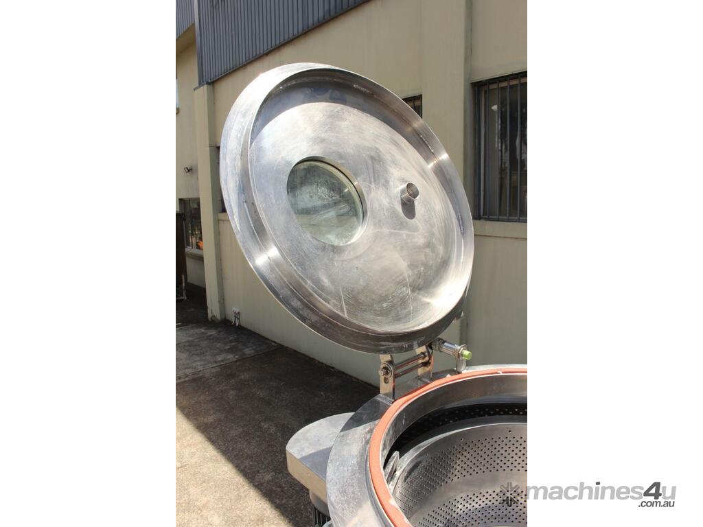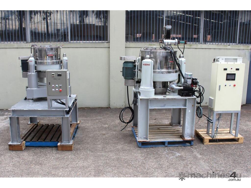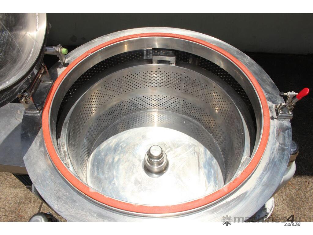 Sievebag Centrifuge, "HANSEONG", Model HES20, capacity: 20 inches, stainless steel wetted parts, driven by 3 phase 2.2kw 1430 rpm motor, mounted on steel base, overall dimensions (L x W x H): 1600 mm x 1300 mm x 2000 mm, made in Korea