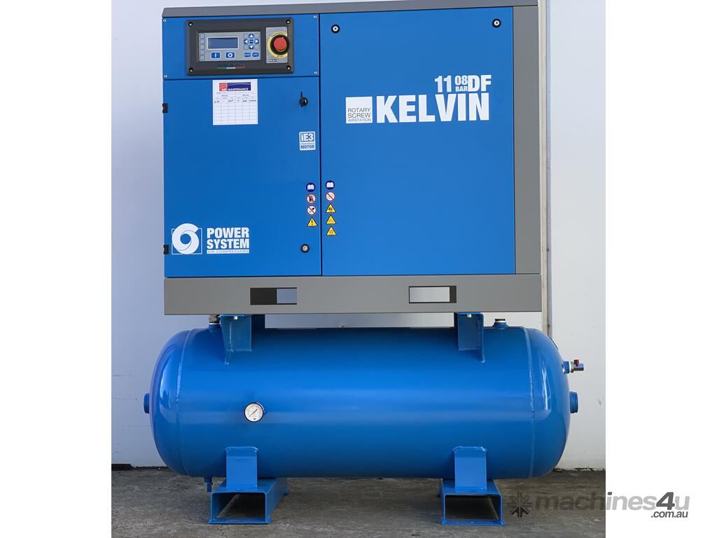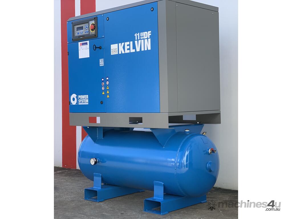 POWER SYSTEM 44cfm Rotary Screw Air Compressor & Air Dryer. Model: K-7.DF, 7.5Kw (10Hp) Complete with 270 Litre Receiver, Micro Processor Monitor, Built In Pre & Final Filters. Volt