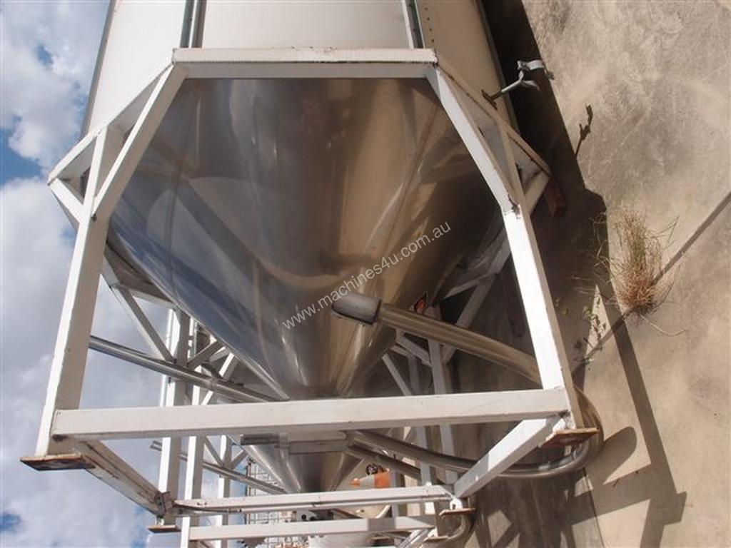 Unit is a steel silo with stainless steel cones. Height of Silo: 9,300mm H Straight x 1,300mm Cone which is 550mm from the ground. Silo fitted with blow line and side manway on discharge cone. Silo is clean and was previously storing plastic. Silo is also supplied with weighing load cells (condition unknown).