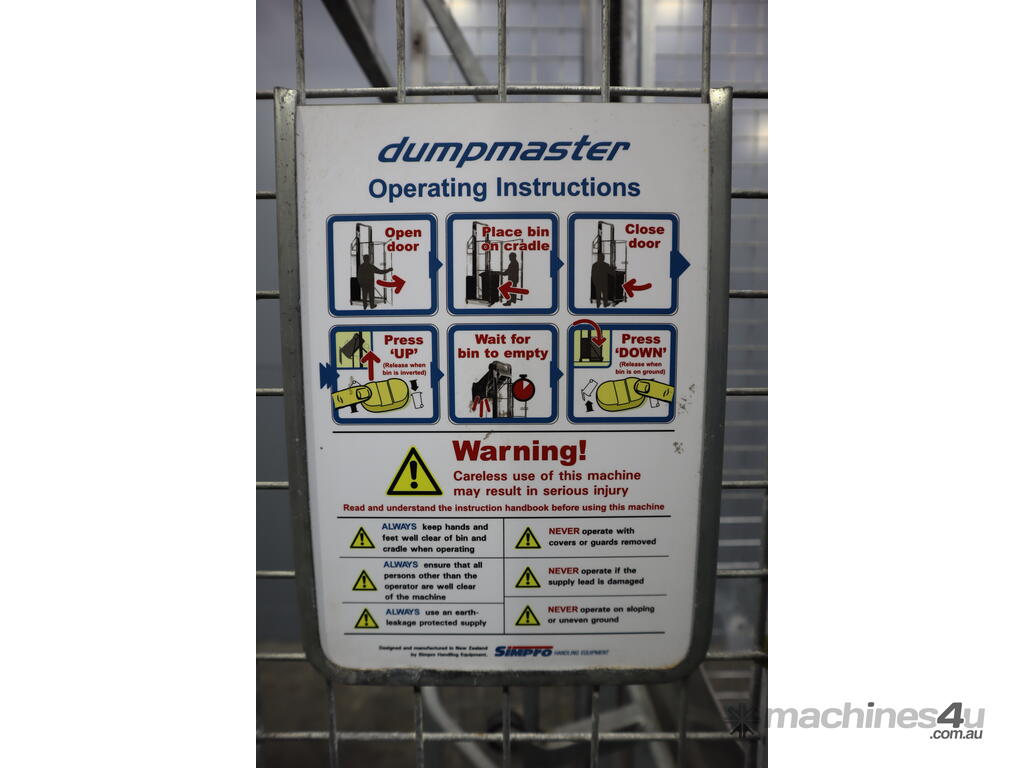 Simpro’s Dumpmaster electric bin tipper has a massive 200kg load capacity, and a 15 second tipping cycle. The heavy-duty Dumpaster can lift all EN840 wheelie bins and dump them into a skip at a height of 1.8 metres.