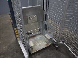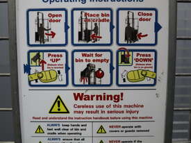 The unique hydraulic action lifts bins vertically before gently rolling them upside-down over the lip of the destination receptacle, all using just one square metre of floorspace. The mass of the bin remains within the footprint at all times, ensuring stability throughout the tipping cycle.