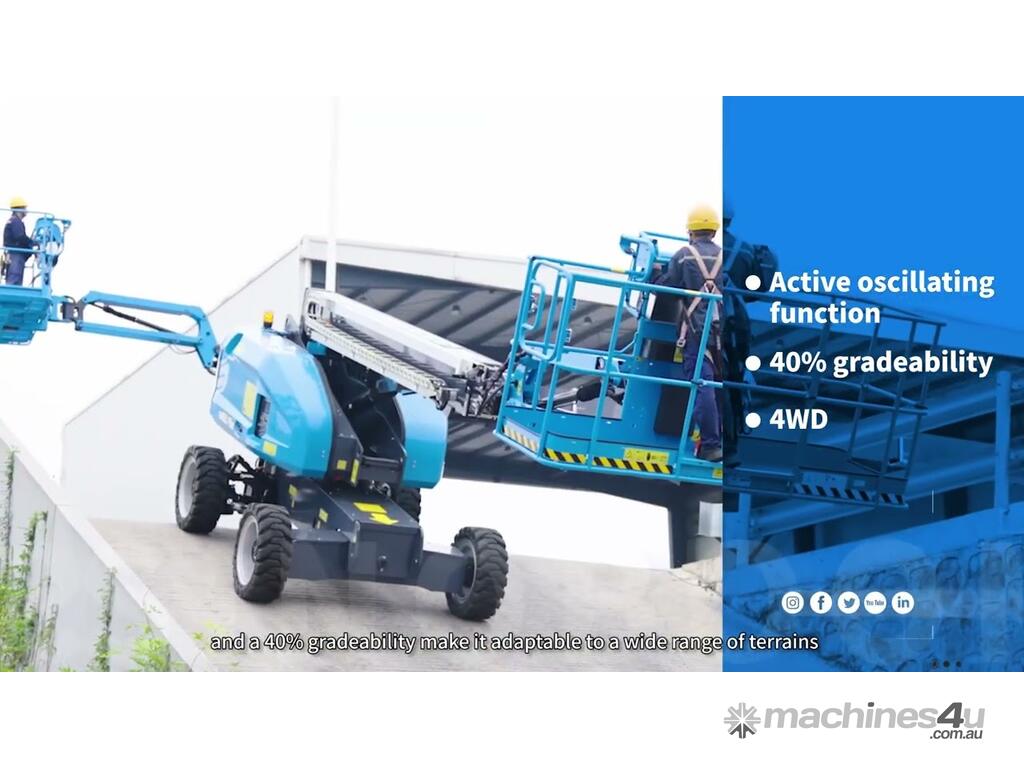 The SINOBOOM TB14J PLUS is a diesel-powered, self-propelled telescopic boom lift designed for tasks in construction, maintenance, and other industries requiring elevated work. With a platform capacity of up to 454 kg and a working height of 16.1 meters, it efficiently handles many applications safely!